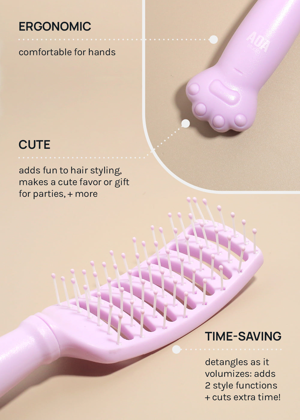 Curved design adds bounce to flat hair. Save time as it detangles + volumizes, all while ensuring an ergonomic, comfortable grip.