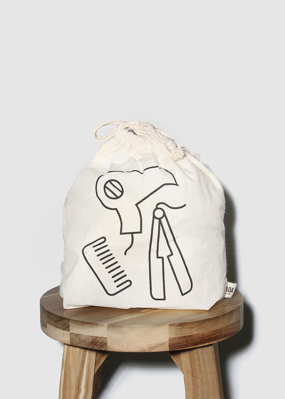 AOA Beauty Tools Canvas Bag, holds your hair dryer, curling iron, brushes, hair clips and accessories! Or you can use it for larger toiletries as well! Super soft canvas and drawstring closure. Great for weekend getaways, longer trips, the gym bag or just to keep your tools organized under the sink!