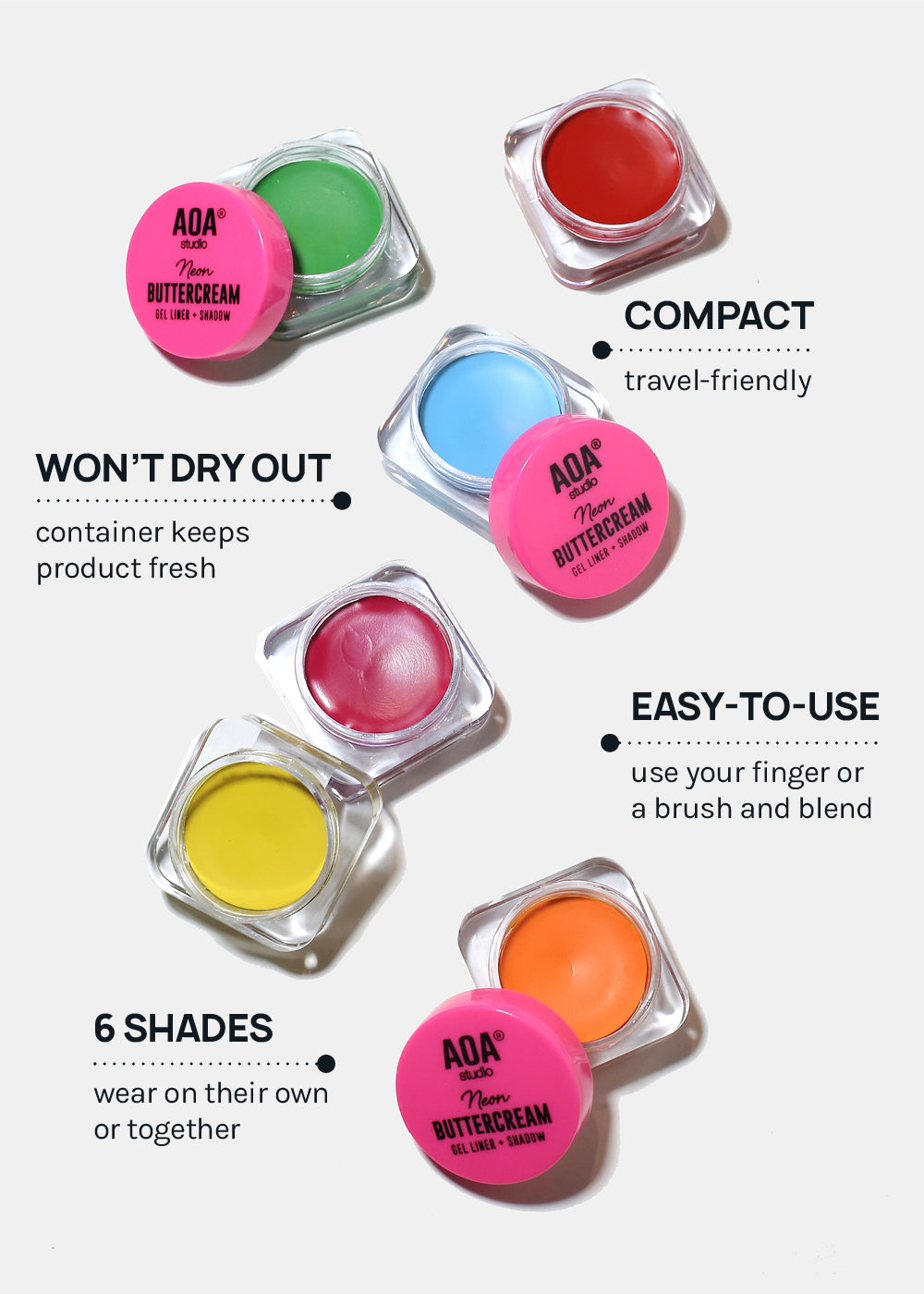 Now Available in bright, fun neon shades! Pigmented and Creamy!