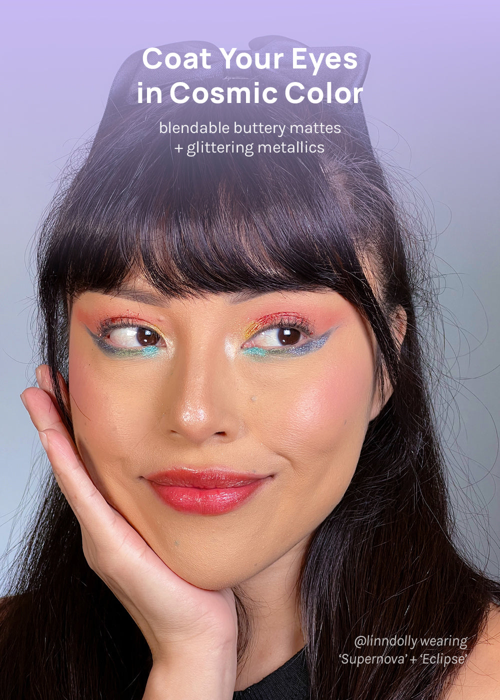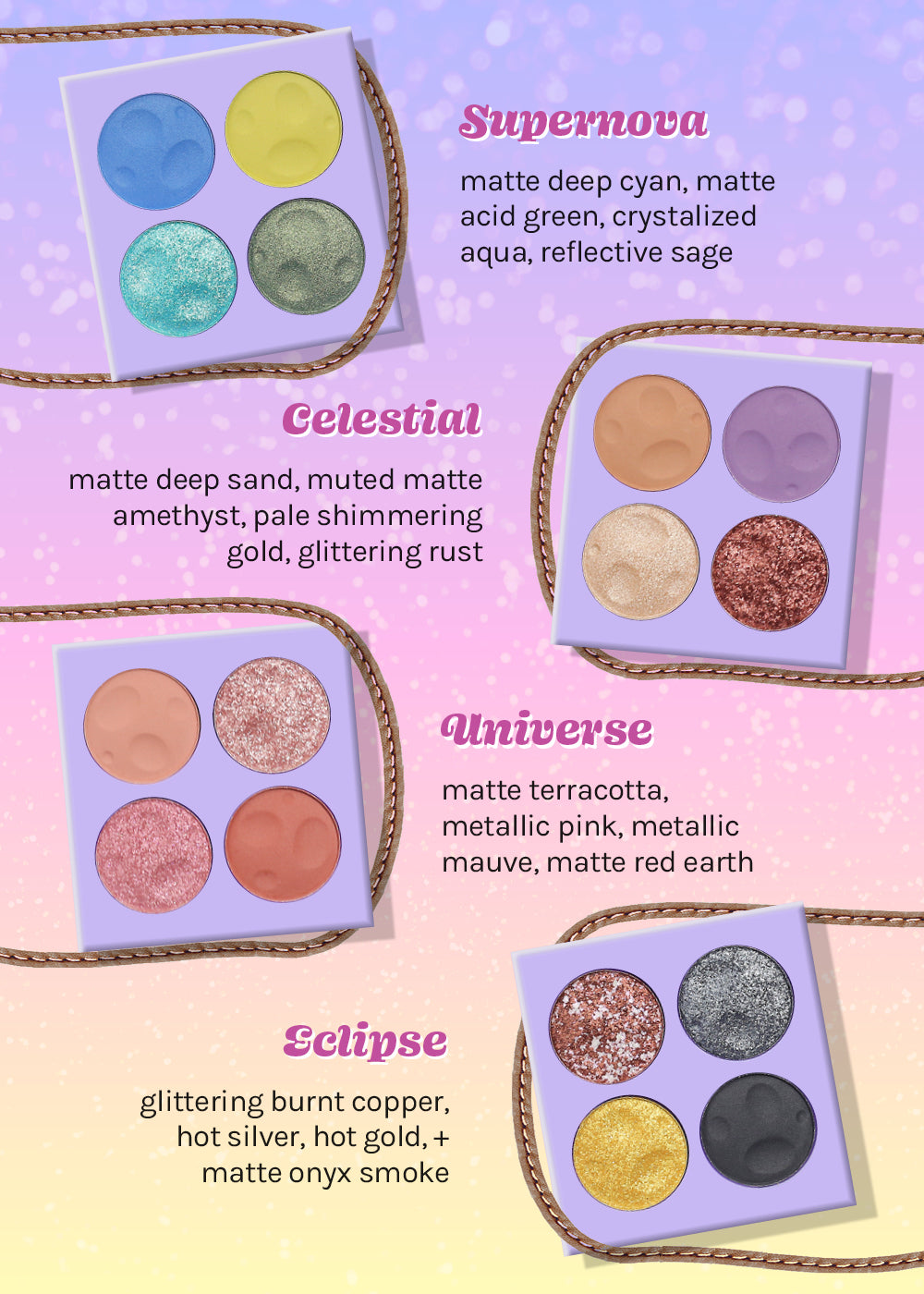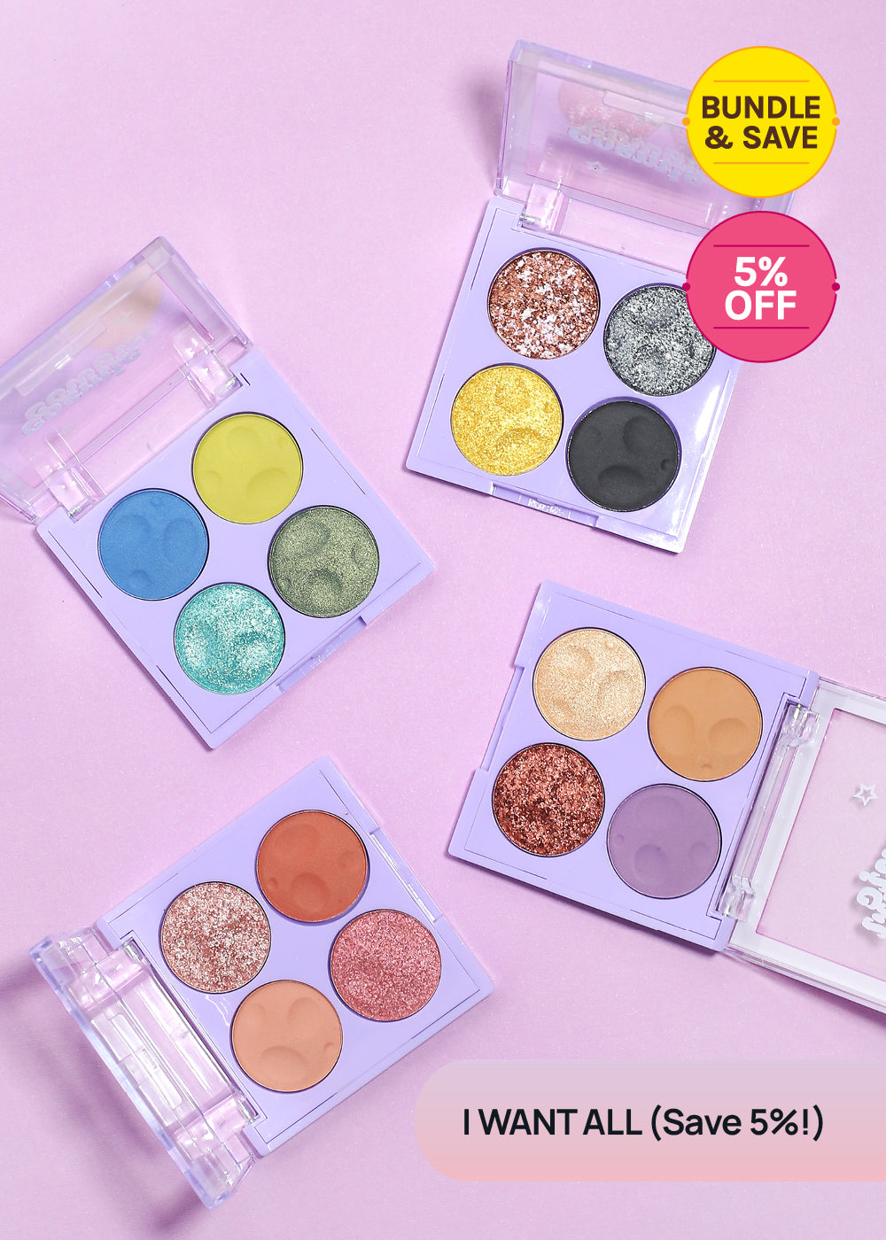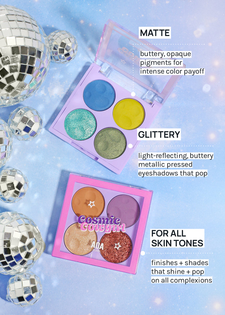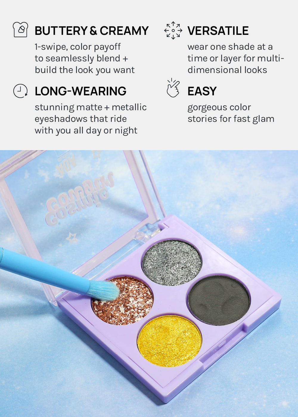 They won’t believe your eyes, girl: baked eyeshadow quads with buttery mattes + metallics with 1 swipe color payoff to get ‘em all talking.