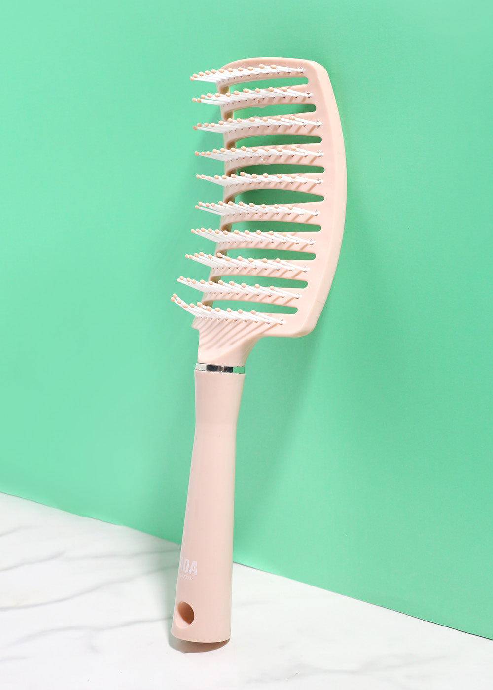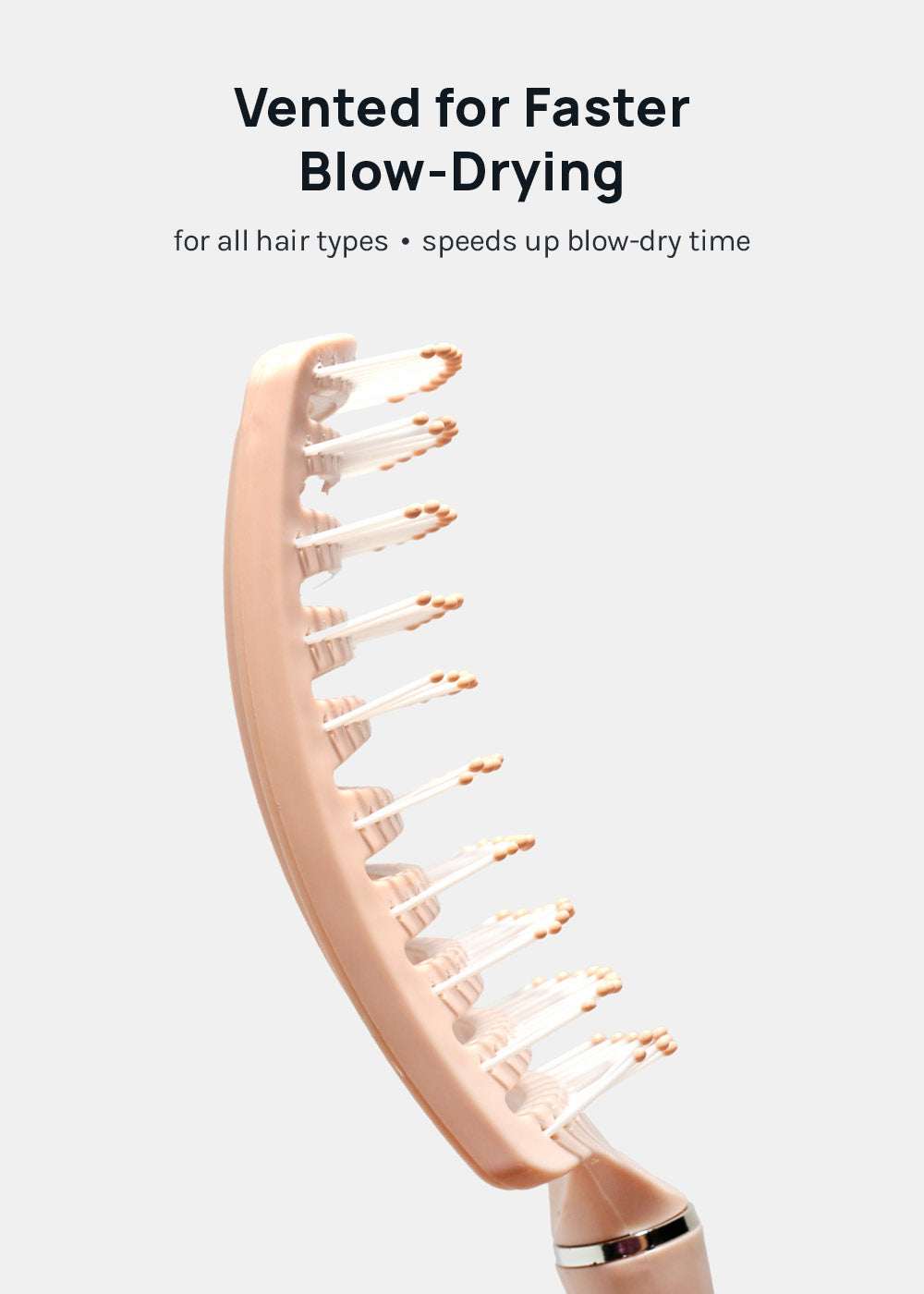 The AOA Curved Vented Brush is your new blow-dry best friend! Designed with wide-set, flexible bristles + a curved vented head, this pro-level styling brush grips more hair at once, cutting your drying time while boosting volume. The vented design allows maximum airflow for faster blow-drying, while the contoured shape lifts flat hair at the roots for natural bounce + body.