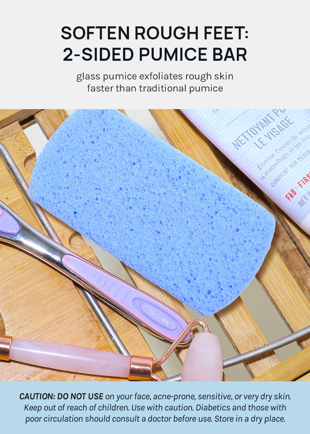 Ideal for feet, hands, elbows, + other dry areas, this long-lasting glass pumice bar helps you maintain healthy, baby-soft skin from the comfort of home.