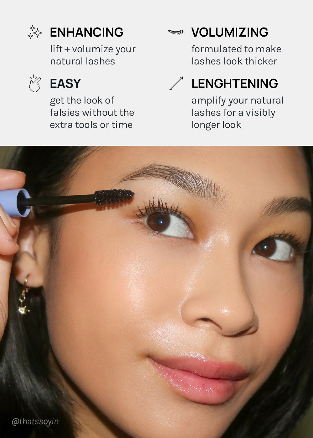 LAYER-ON EXTRA LASHES: formulated to make lashes look longer + thicker for the look of falsies without the extra tools or time. Non-toxic, with lash conditioning beeswax for fewer clumps.