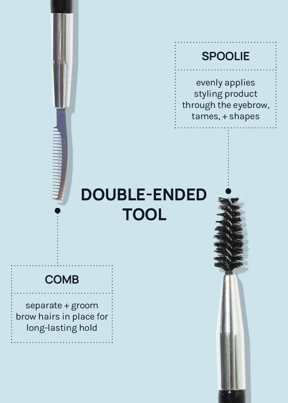 This innovative, dual-ended tool perfectly styles + applies brow styling wax, gel, pomade, + more with precision.
