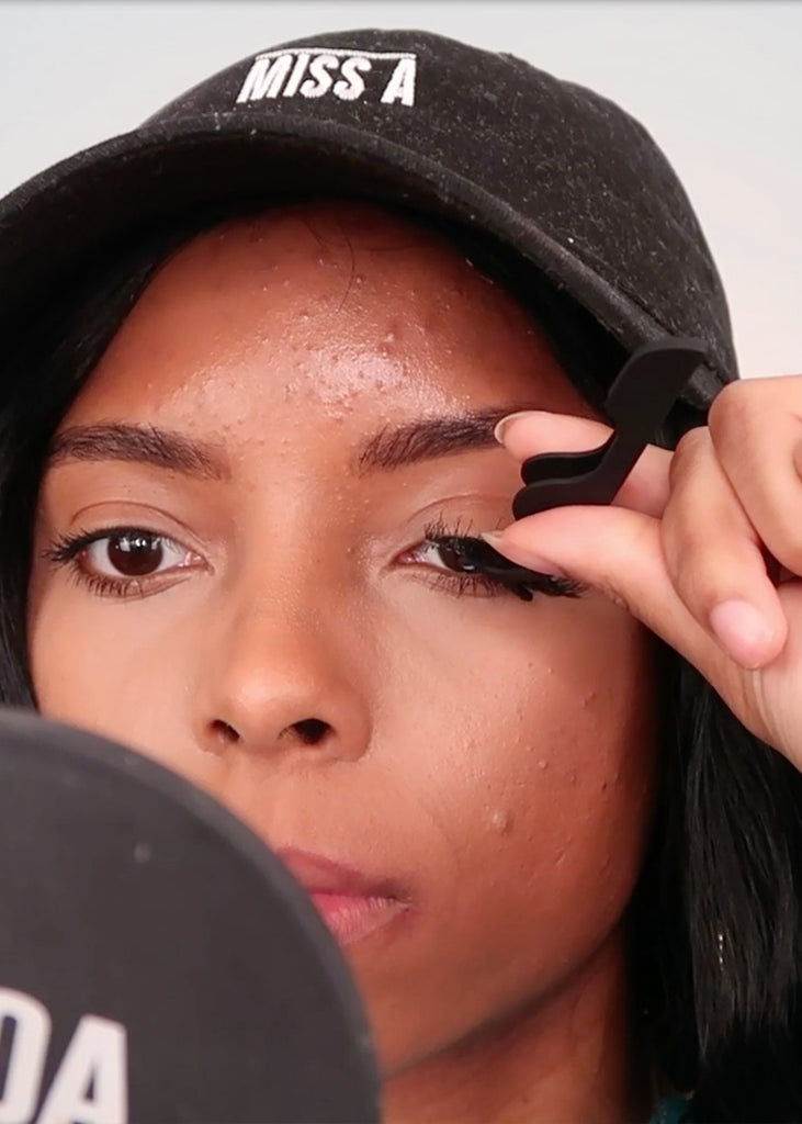 How to use: Apply glue to the band of the false eyelashes and place the lash in the head of the tool and gently squeeze to close. Line up the band of the false eyelashes to your eyelid lash line.