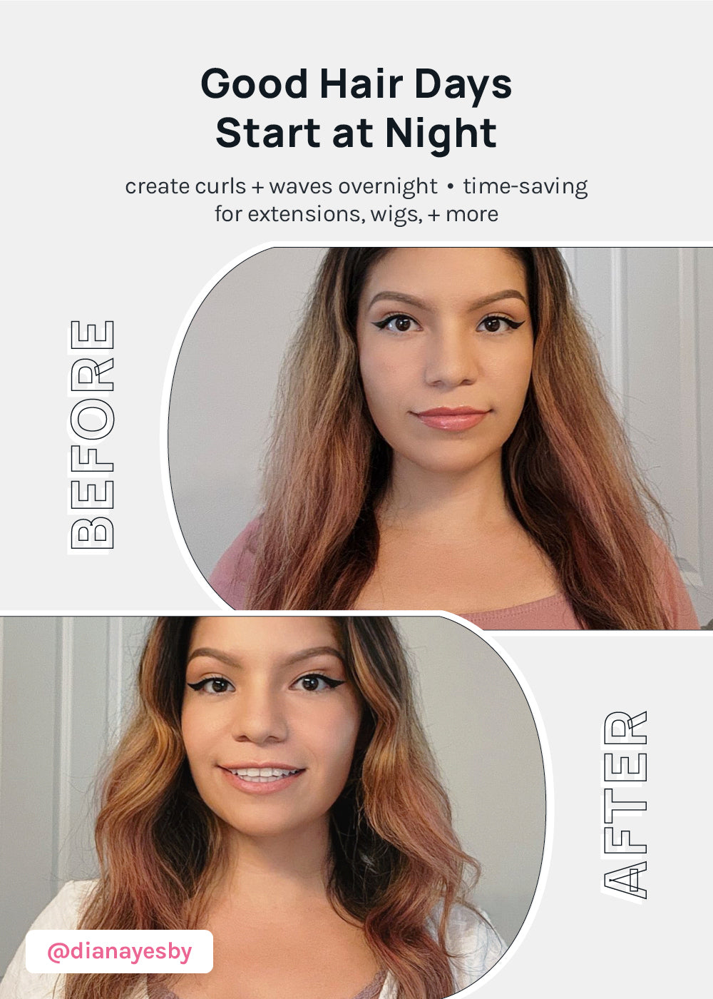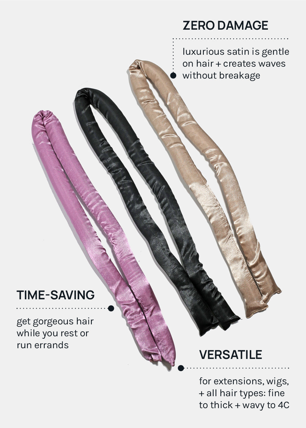 Frizz-free, perfect waves, + curls for all hair types! No matter your style, add heat + damage-free volume to your hair while you sleep, do chores, run errands + more!