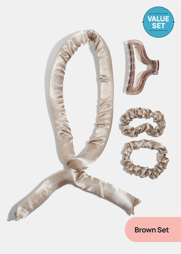 AOA Heat-free Satin Hair Curling Rod - Brown