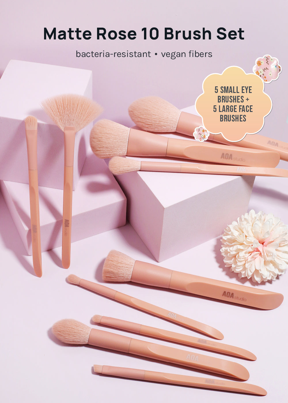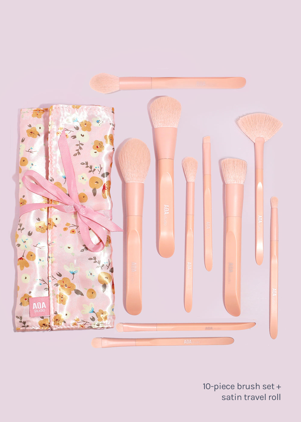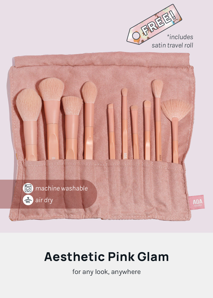 AOA Matte Rose Brush Set + Satin Travel Roll