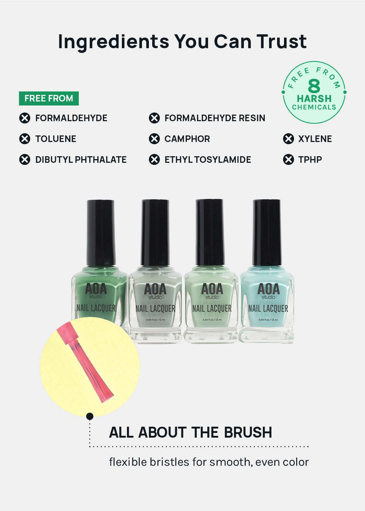 Express yourself with AOA Nail Lacquer, available in 54 NEW gorgeous shades from chic neutrals to dazzling glitters! Designed with a chip-resistant, non-toxic formula, this nail polish delivers vibrant, high-impact color with a smooth, streak-free application. Whether you love classic elegance or trendy statement nails, there’s a perfect shade for every mood and occasion.