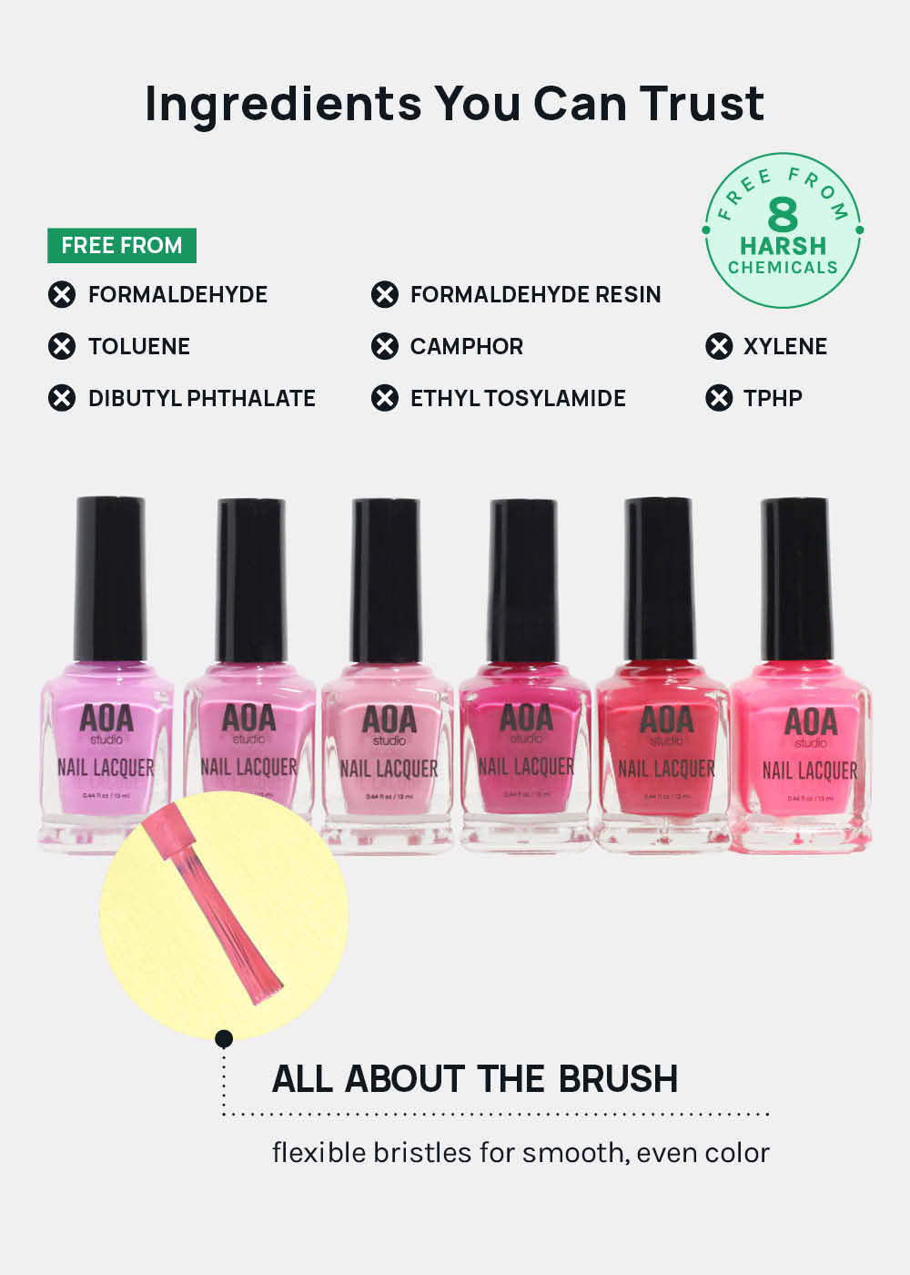 Express yourself with AOA Nail Lacquer, available in 54 NEW gorgeous shades from chic neutrals to dazzling glitters! Designed with a chip-resistant, non-toxic formula, this nail polish delivers vibrant, high-impact color with a smooth, streak-free application. Whether you love classic elegance or trendy statement nails, there’s a perfect shade for every mood and occasion.