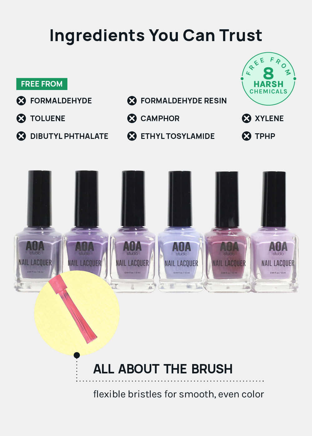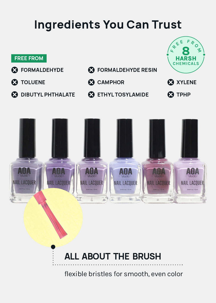 Express yourself with AOA Nail Lacquer, available in 54 NEW gorgeous shades from chic neutrals to dazzling glitters! Designed with a chip-resistant, non-toxic formula, this nail polish delivers vibrant, high-impact color with a smooth, streak-free application. Whether you love classic elegance or trendy statement nails, there’s a perfect shade for every mood and occasion.