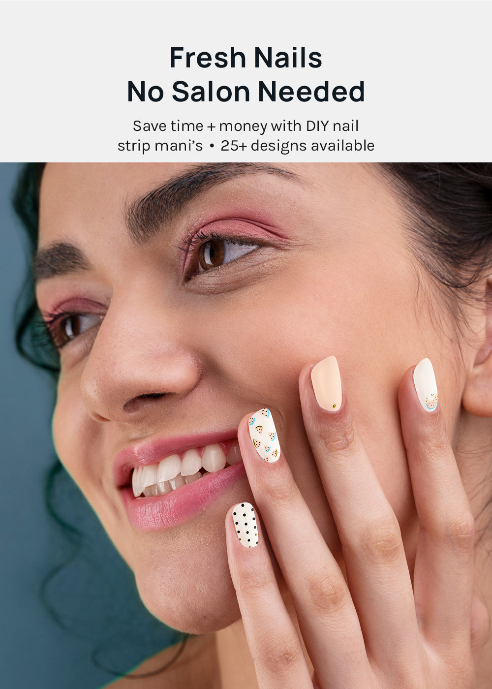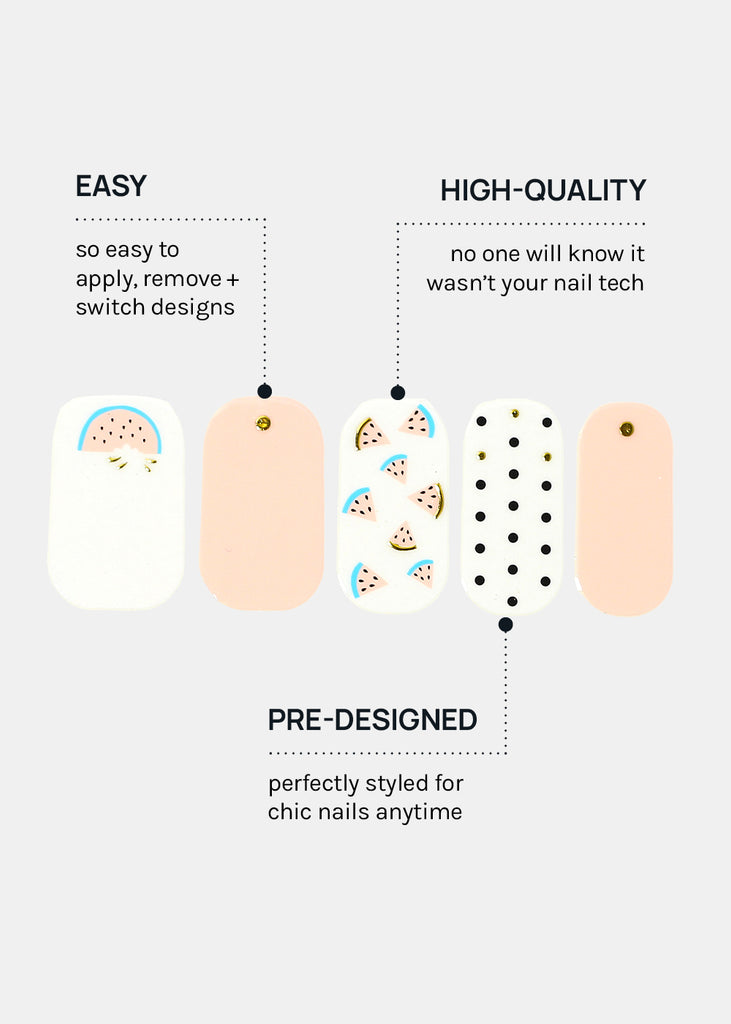 Bye-bye drying time! Create a perfect mani in minutes – just peel, stick, press + file!