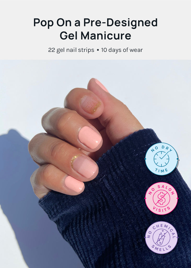 Get an easy mess-free manicure. Just peel, stick, press + file. No glue needed!