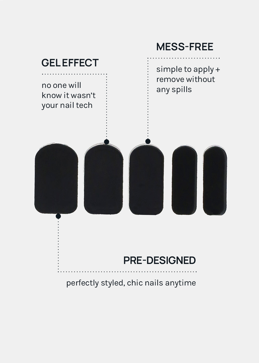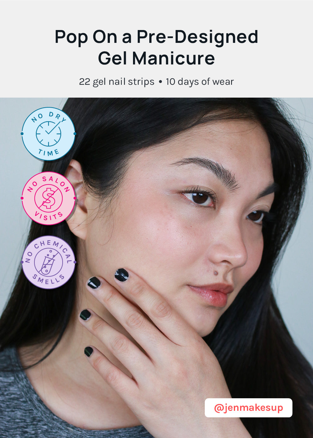 Get an easy mess-free manicure. Just peel, stick, press + file. No glue needed!