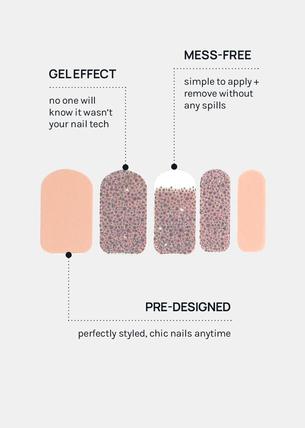 Get an easy mess-free manicure. Just peel, stick, press + file. No glue needed!