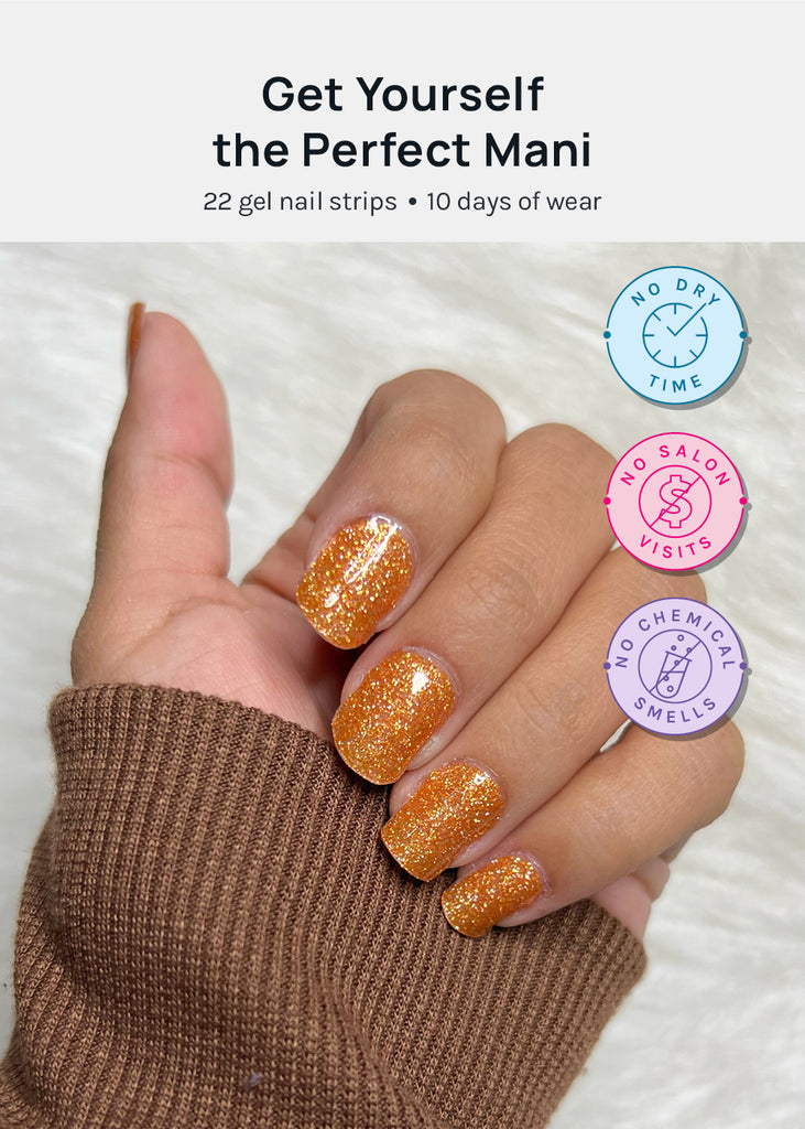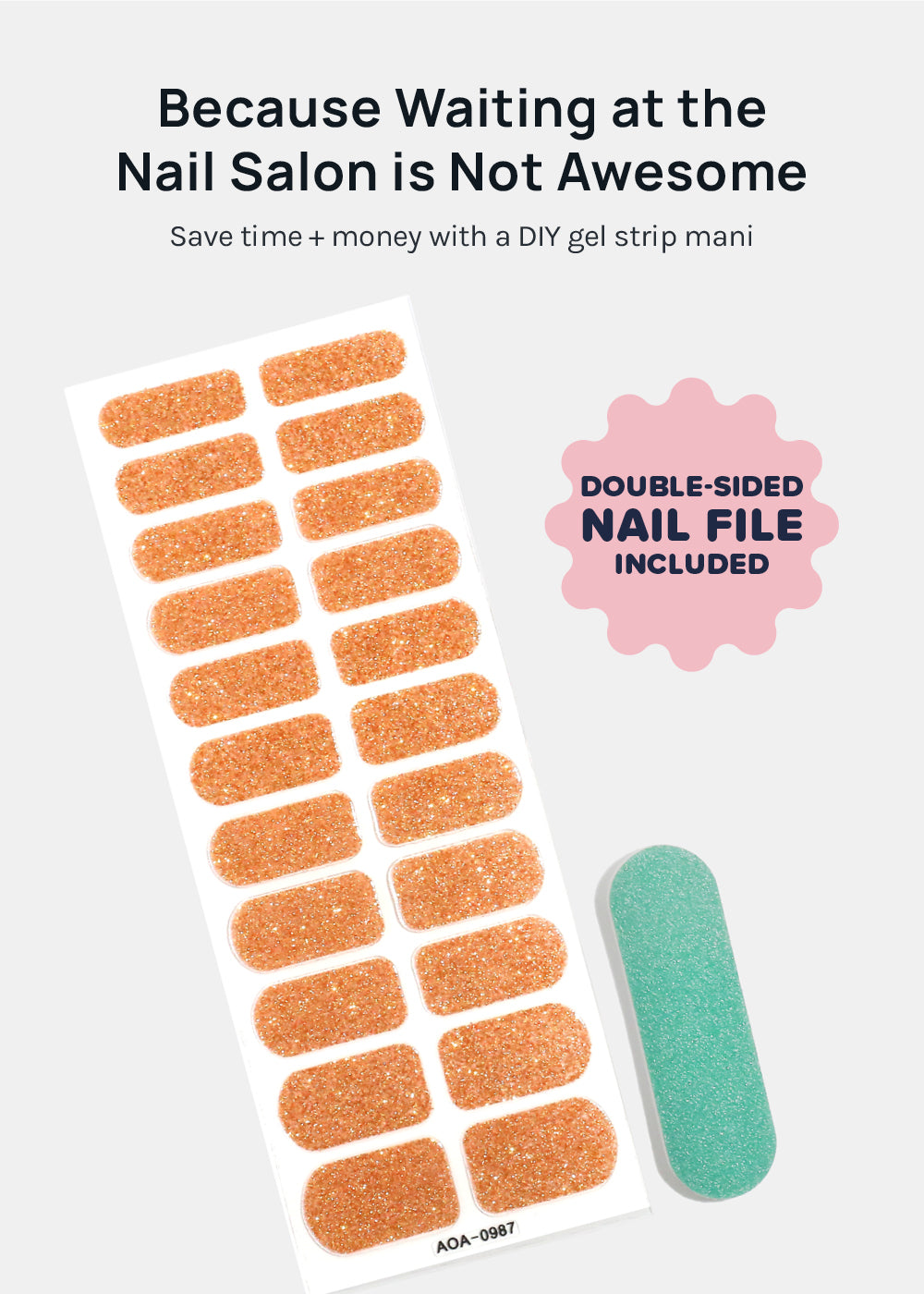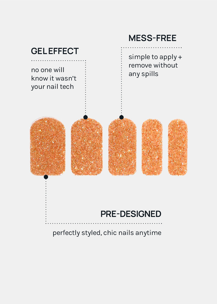 Get an easy mess-free manicure. Just peel, stick, press + file. No glue needed!