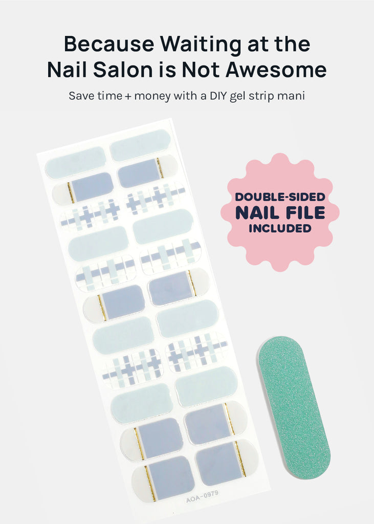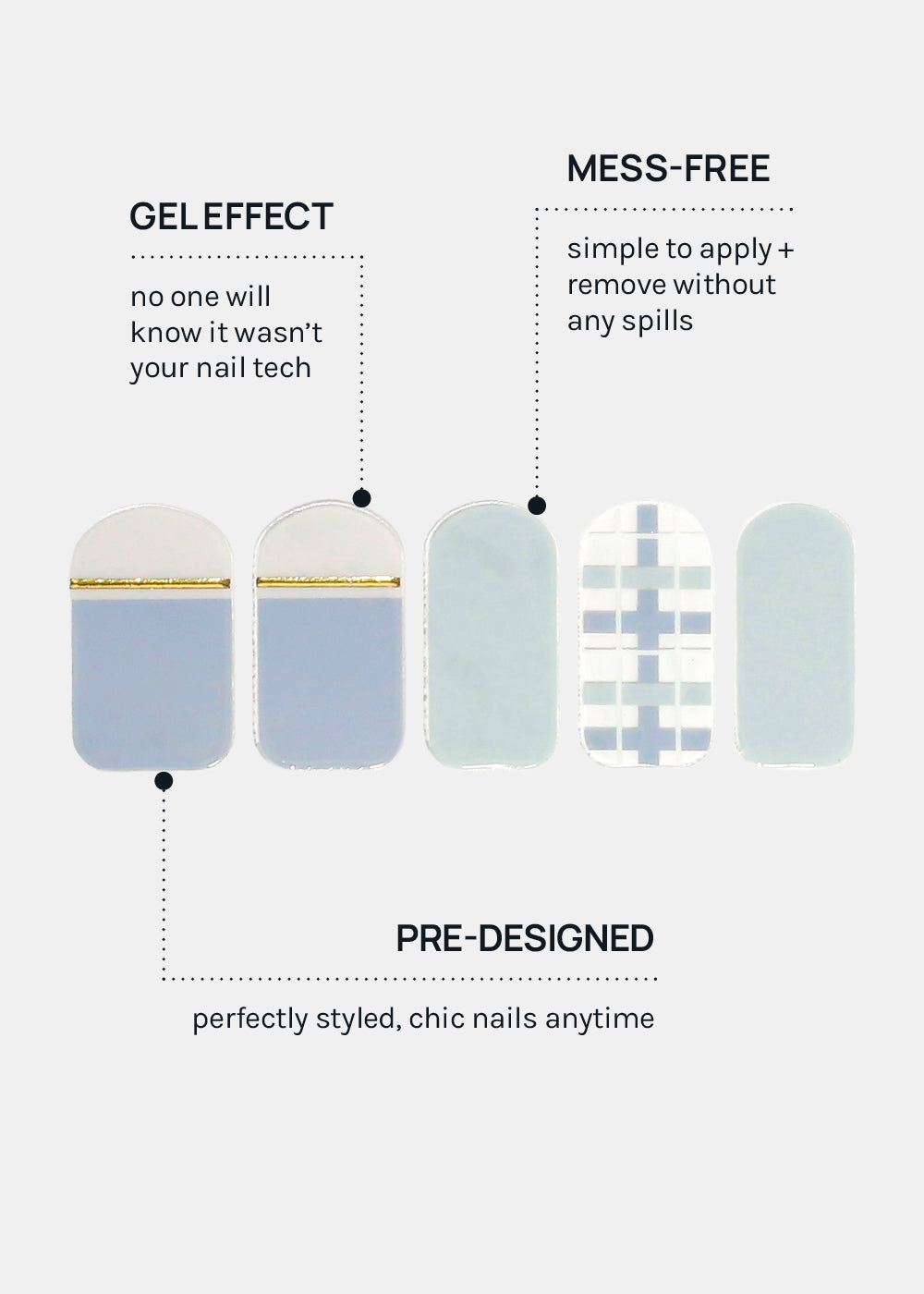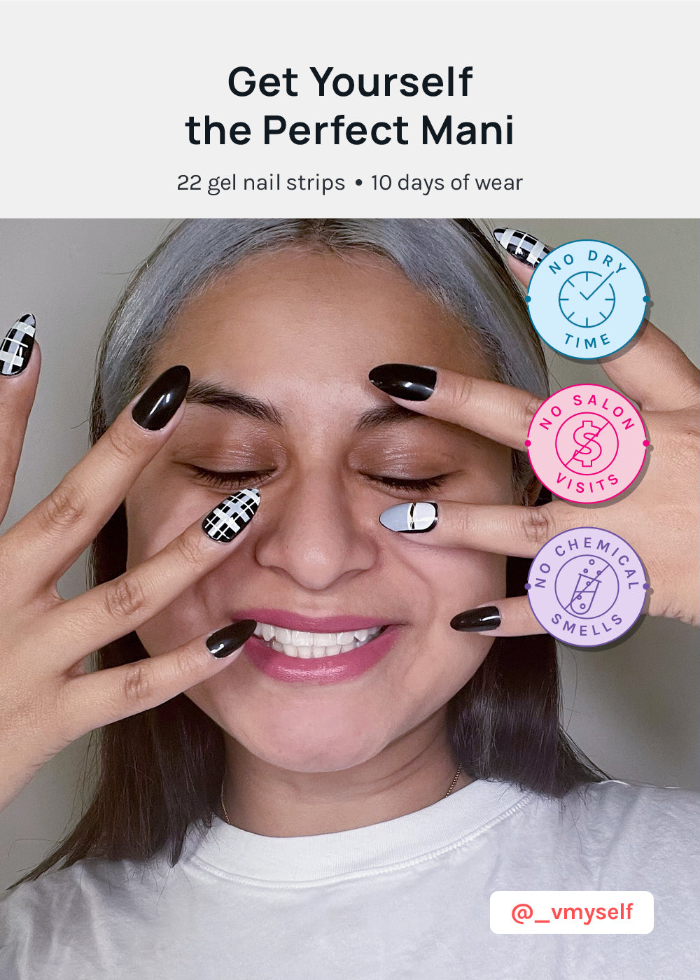 Get an easy mess-free manicure. Just peel, stick, press + file. No glue needed!