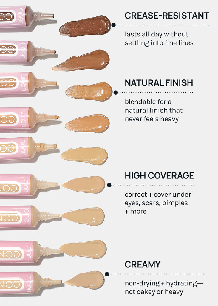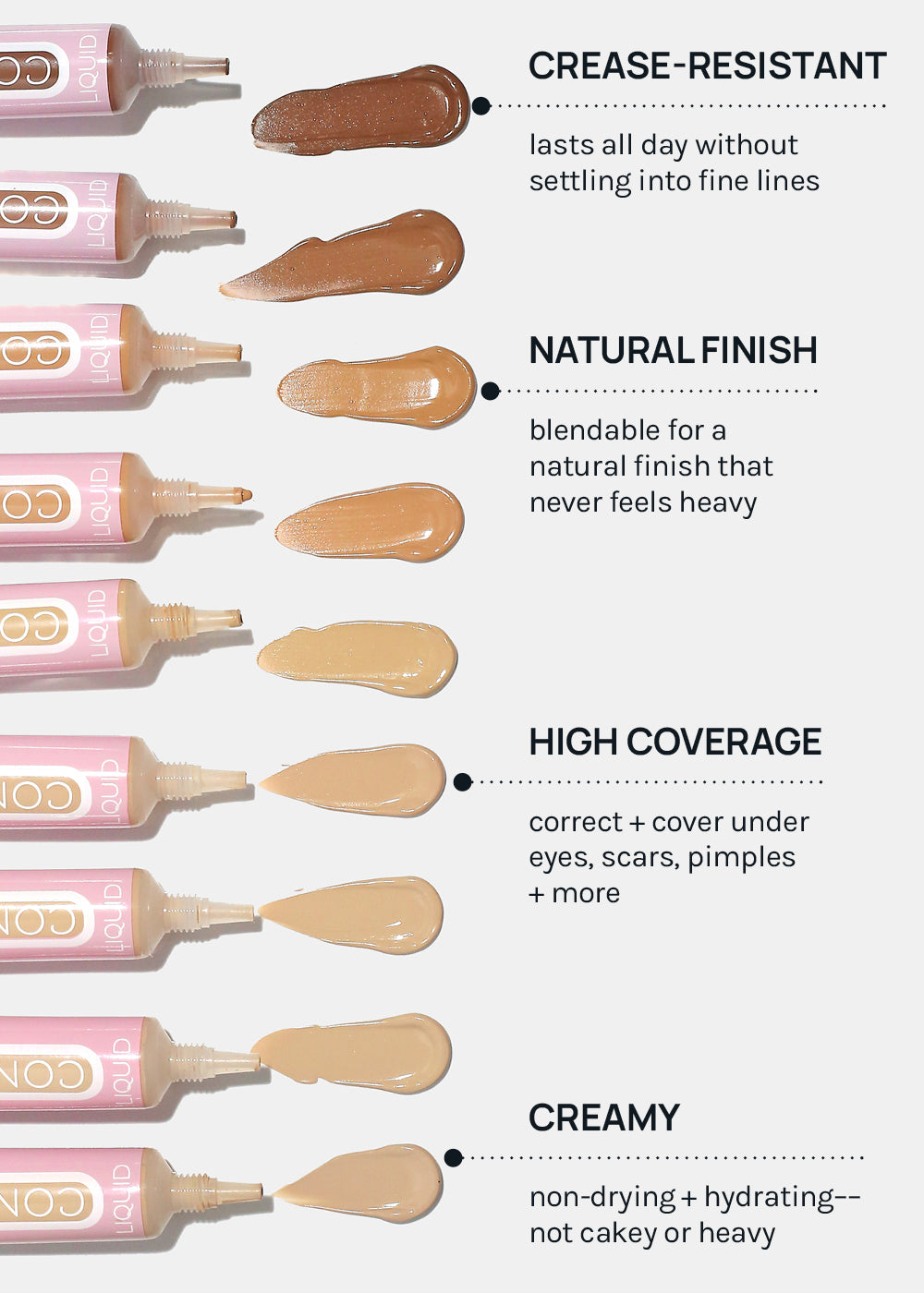 Super creamy, medium to full coverage concealer. This concealer lasts all day without settling into fine lines.