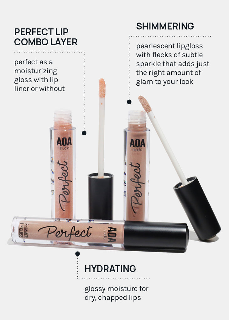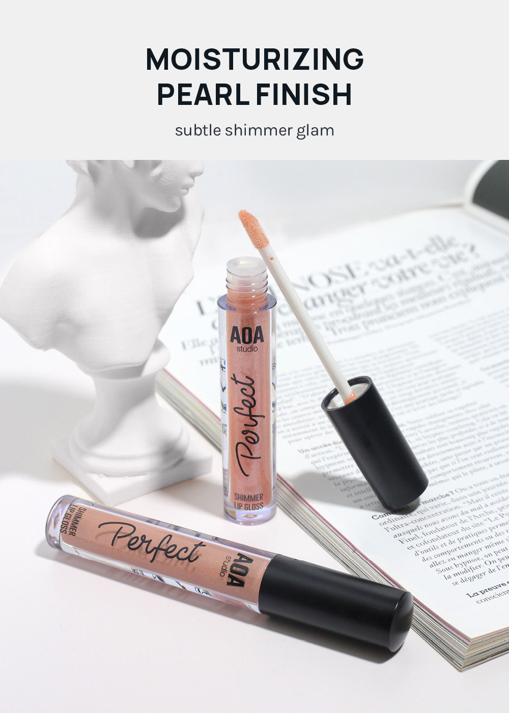 Turn up the shine with Perfect Shimmer Lip Gloss, a pearlescent gloss infused with subtle sparkle that adds the perfect touch of glam to any look. Lightweight + non-sticky, this gloss delivers a comfortable, glassy shine without the heavy or gooey feel.