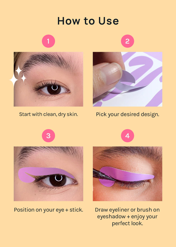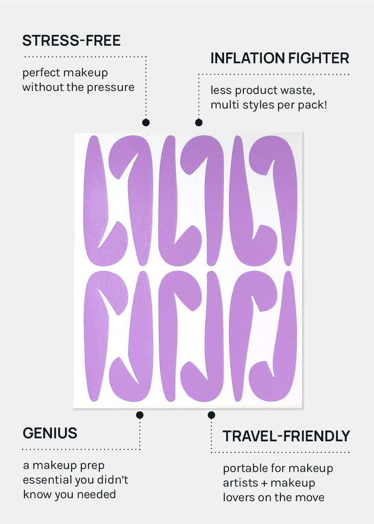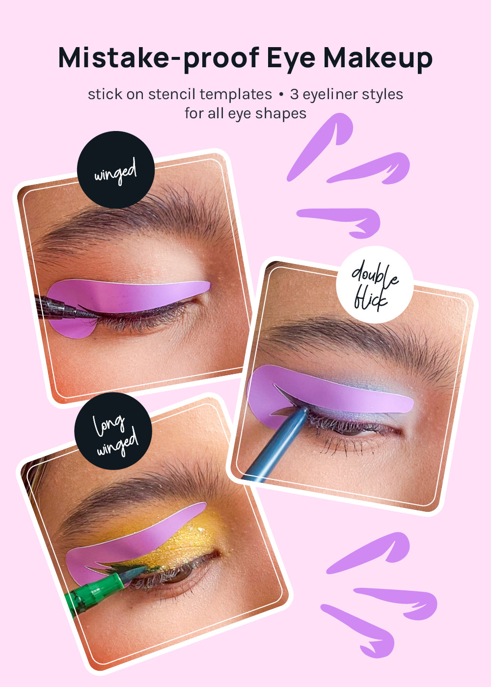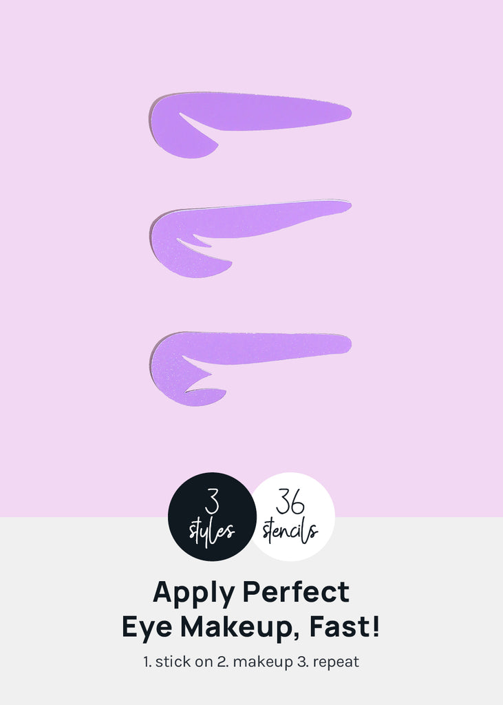 Save makeup + time. Apply eyeshadow + eyeliner fast, perfectly, + easily. Ideal for beginners + professionals. These stencils are non-woven, easy to stick on, safe for sensitive skin, + won’t leave residue.