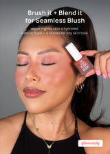 - Gently dab the blush into cheeks and blend out with fingers or AOA wonder blender sponge