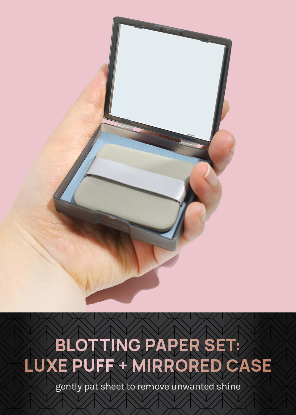 Includes: 100 sheets, puff applicator, + mirrored compact
