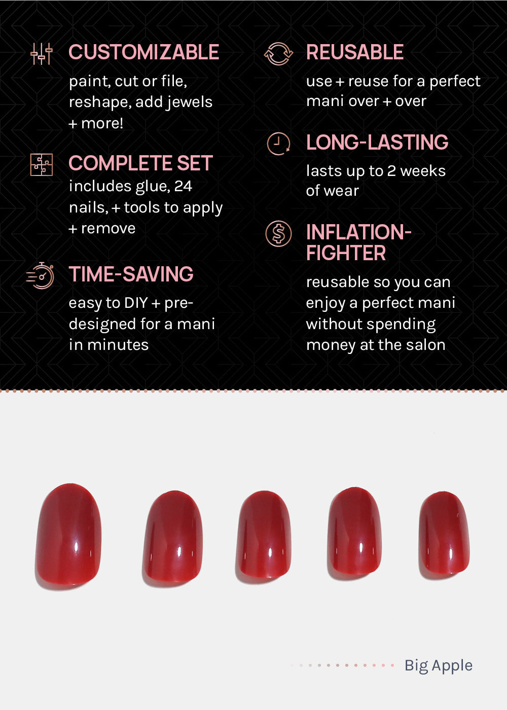 Create a flawless manicure in minutes with AOA Pro Press-On Nails—designed for a luxe look without the salon visit. These durable, reusable press-on nails deliver a smooth, professional finish that lasts, making it easy to switch up your style anytime. Perfect for beginners + pros alike, they apply quickly + comfortably for an instant, polished look at home.