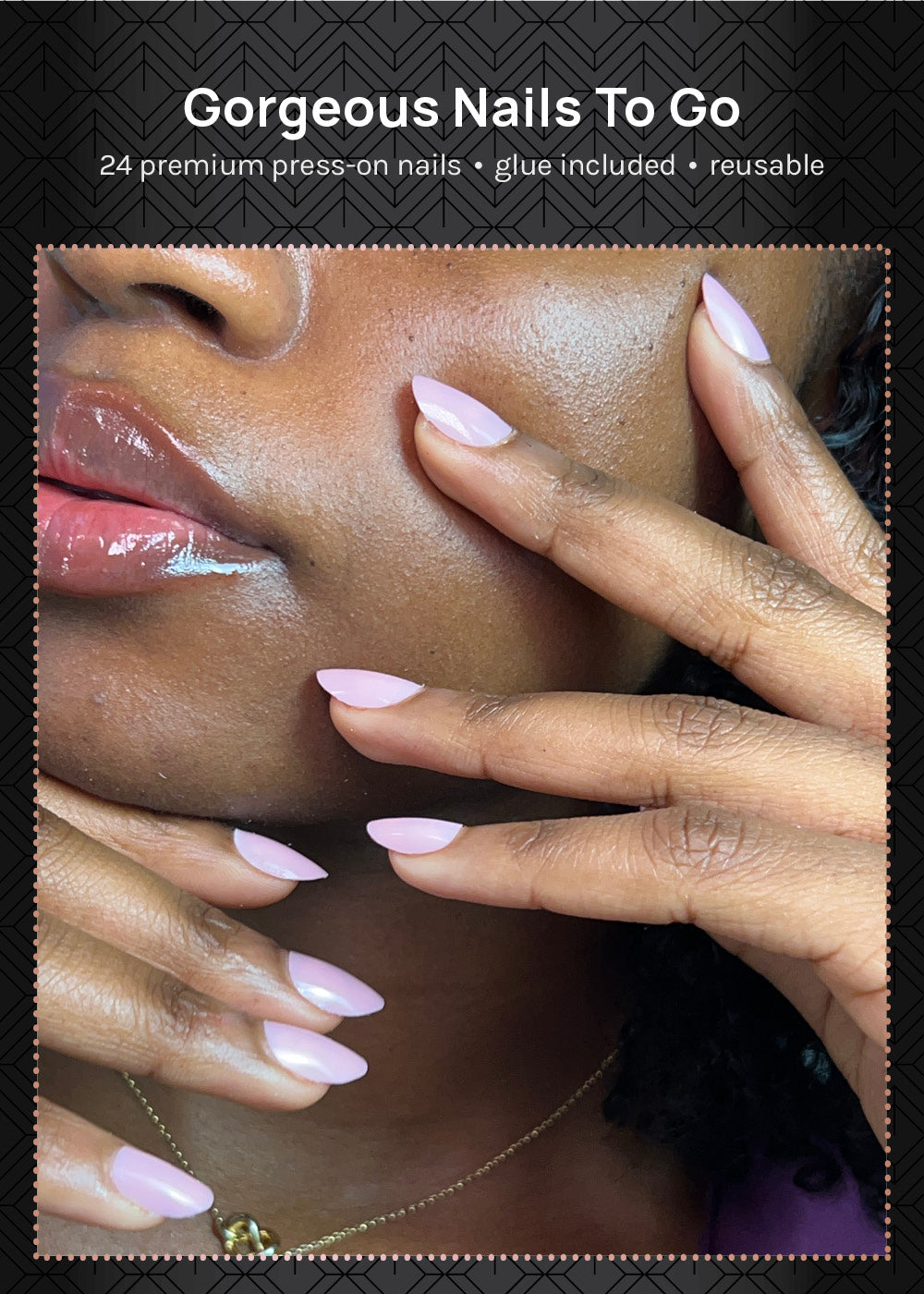 - Apply nail glue to natural nails + press-on nails.