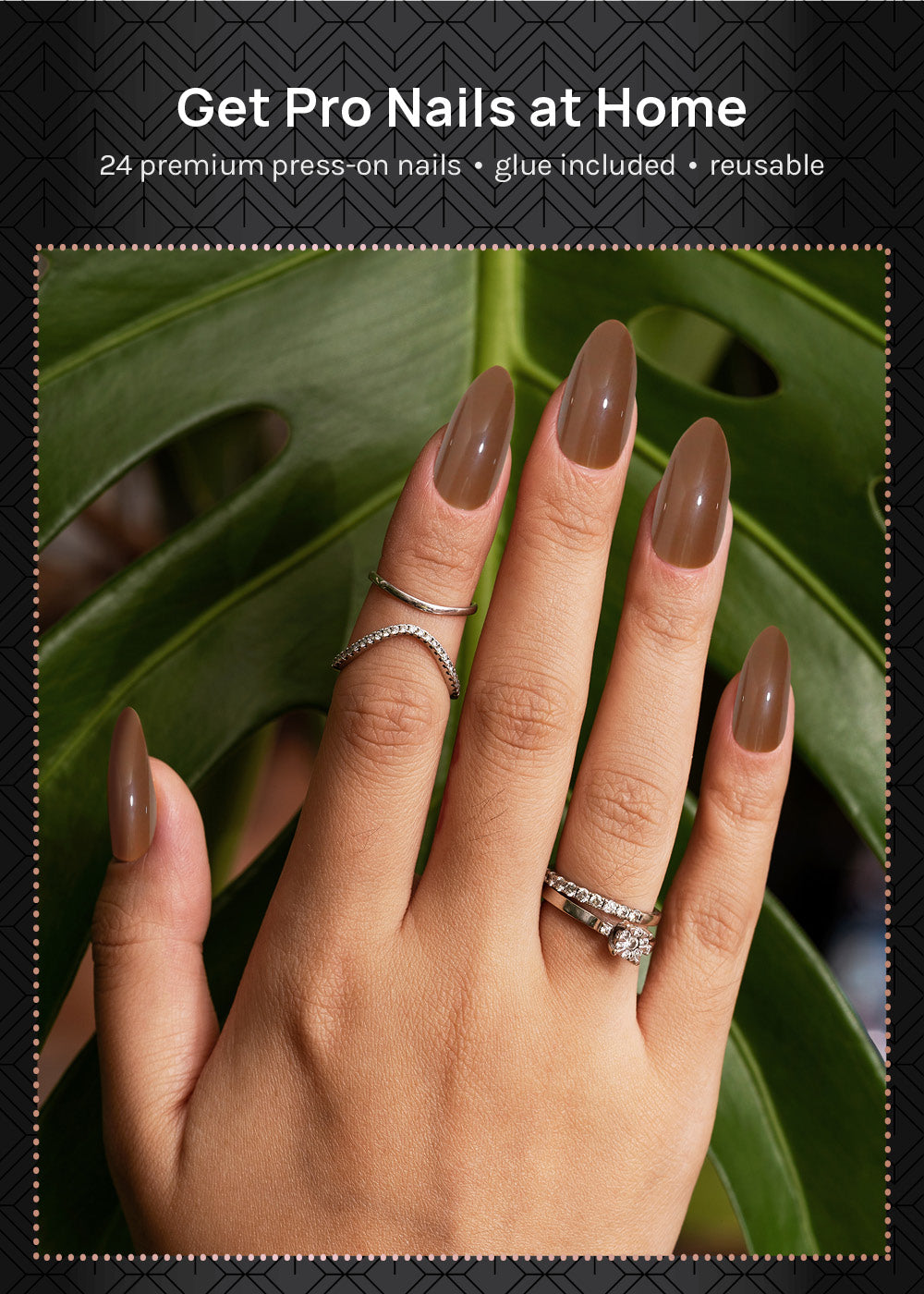 Create a flawless manicure in minutes with AOA Pro Press-On Nails—designed for a luxe look without the salon visit. These durable, reusable press-on nails deliver a smooth, professional finish that lasts, making it easy to switch up your style anytime. Perfect for beginners + pros alike, they apply quickly + comfortably for an instant, polished look at home.