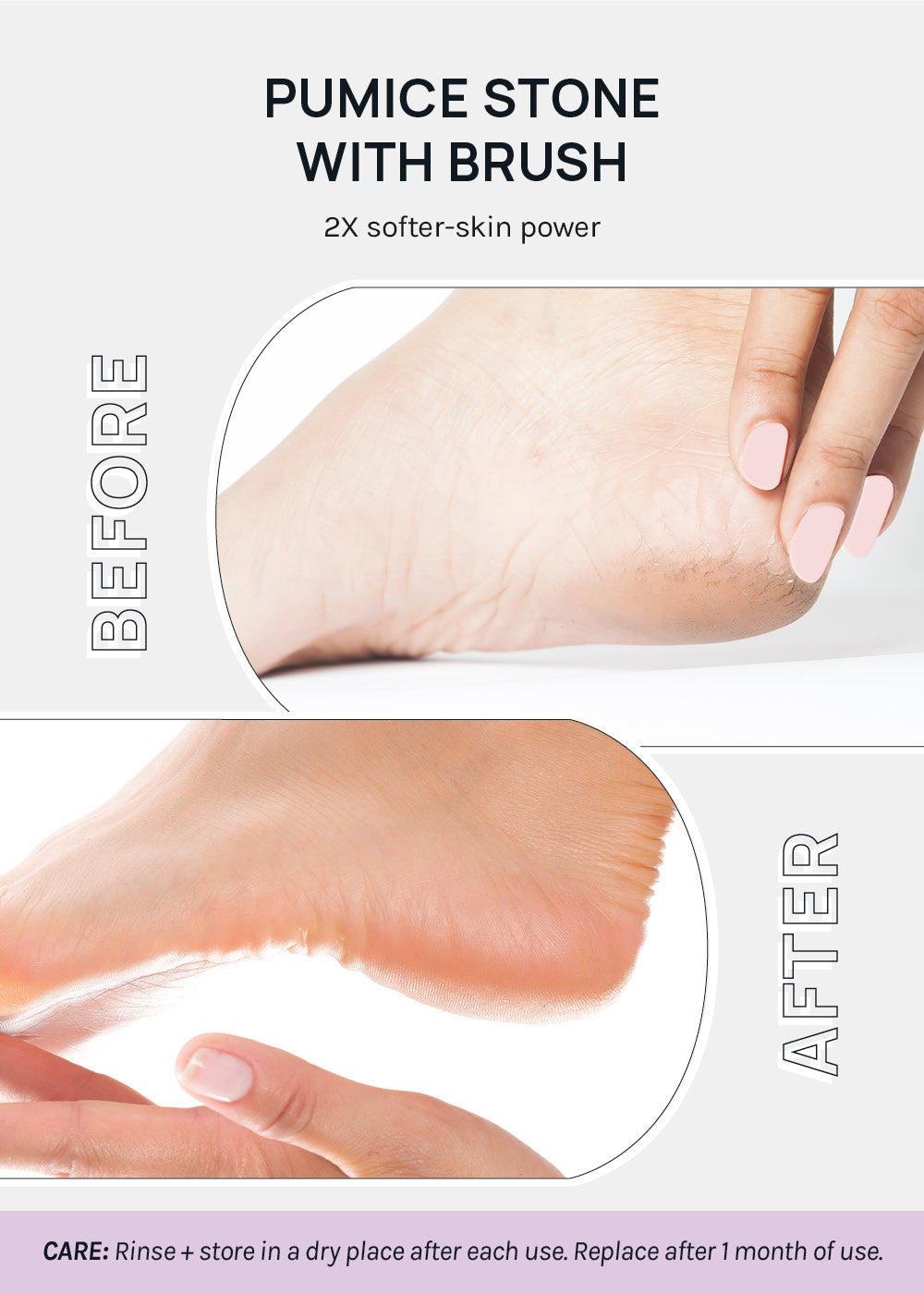 CARE: Rinse + store in a dry place after each use. Replace after 1 month of use.