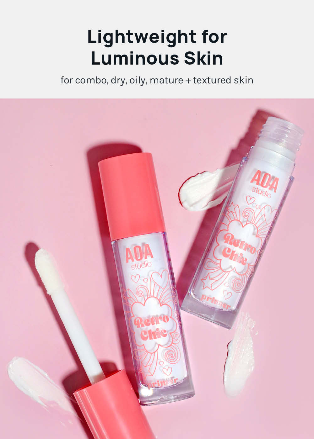 Get the perfect dewy glow with AOA Studio Retro Chic Primer, a lightweight + hydrating primer designed to create a smooth, radiant base for makeup. Infused with Sodium Hyaluronate, this primer locks in moisture, keeping your skin plump + hydrated all day long. The formula blends clear, making it perfect for all skin tones while enhancing your natural glow.