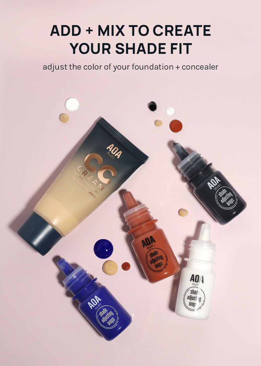 Add + mix your shade fit! Adjust to exact match your foundation + concealer.
