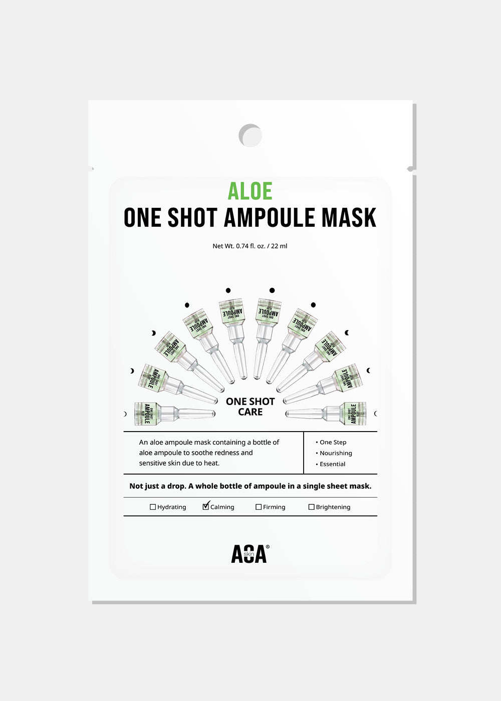 Soothe + refresh your skin with the AOA Skin Aloe One Shot Ampoule Mask: a full bottle of aloe ampoule concentrated into one calming sheet mask. Perfect for sensitive or overheated skin, this mask instantly cools, hydrates, + reduces redness for a balanced, healthy glow.