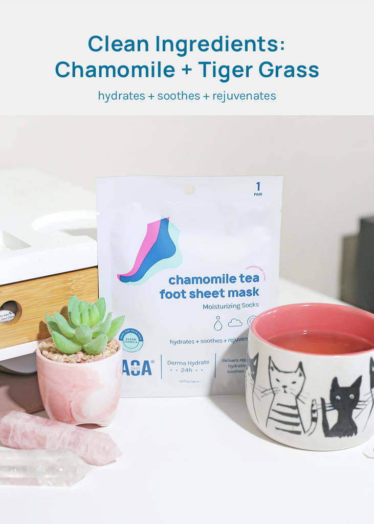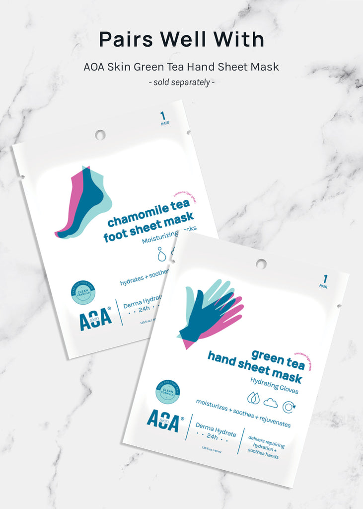 AOA Skin Chamomile Tea Foot Mask delivers repairing hydration + soothes feet