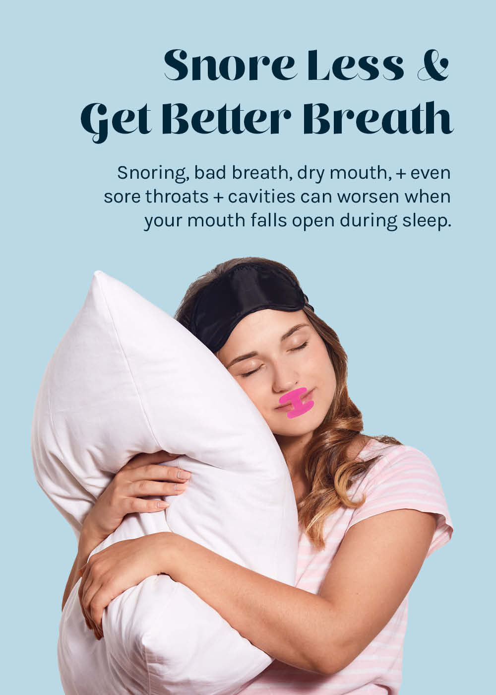 Deeper sleep is here with Dreamie Mouth Strips, the perfect solution to stop mouth breathing + promote healthy nasal airflow. These gentle, latex-free, cotton-blend mouth strips help keep your lips closed comfortably, reducing snoring, dry mouth, + bad breath caused by overnight mouth breathing.