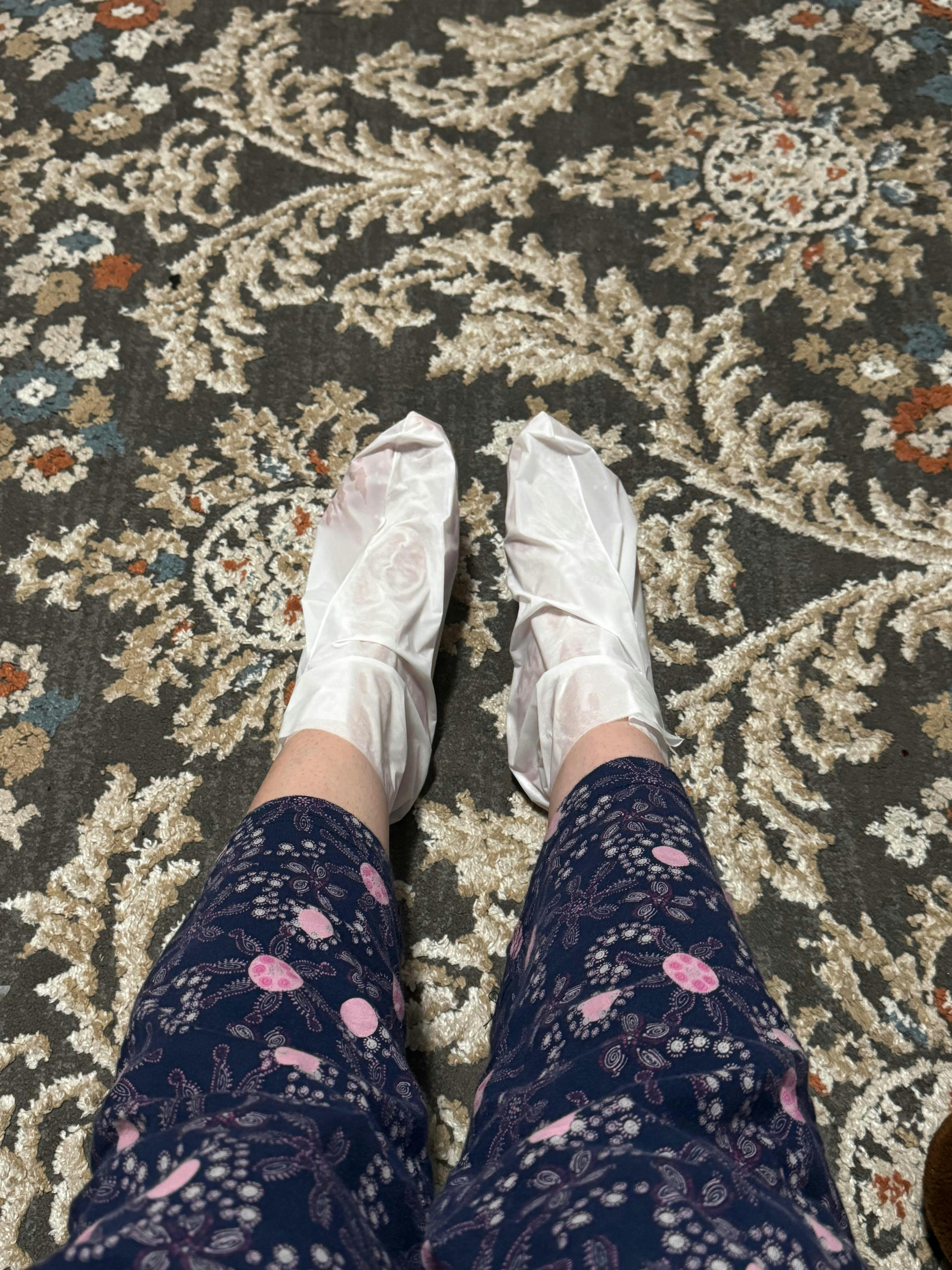3. RELAX Massage feet through the covers. Relax + enjoy for 40 minutes; remove + discard.