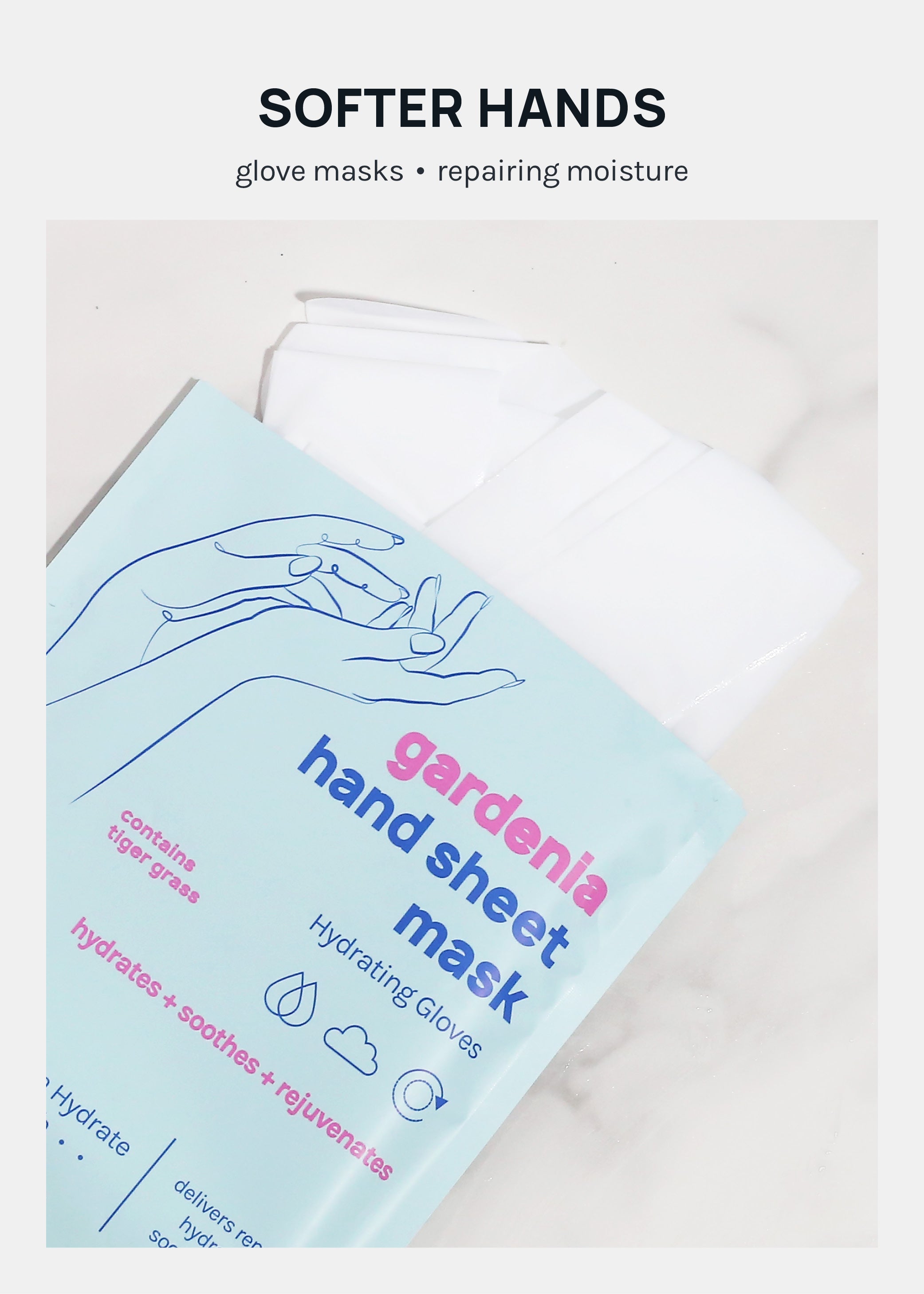 Formulated with Green Tea + Tiger Grass, this Hand Sheet Mask will leave your hands moisturized + softer than ever!