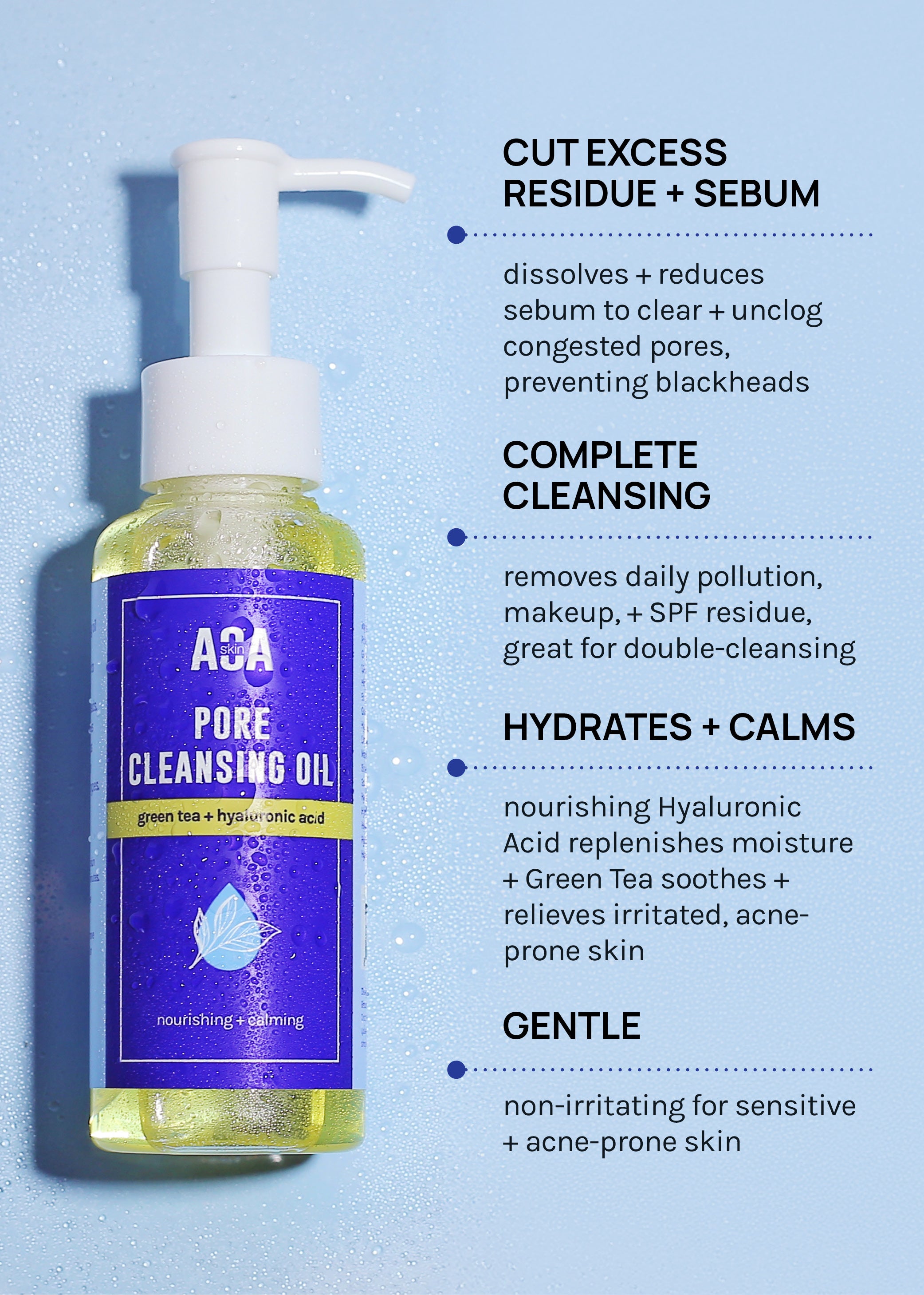 This lightweight cleansing oil dissolves + eliminates makeup residue + sebum to clear + unclog congested pores, preventing blackheads. Hyaluronic acid replenishes moisture, + green tea helps soothe the skin. Gentle for eyes. Suitable for all skin types.