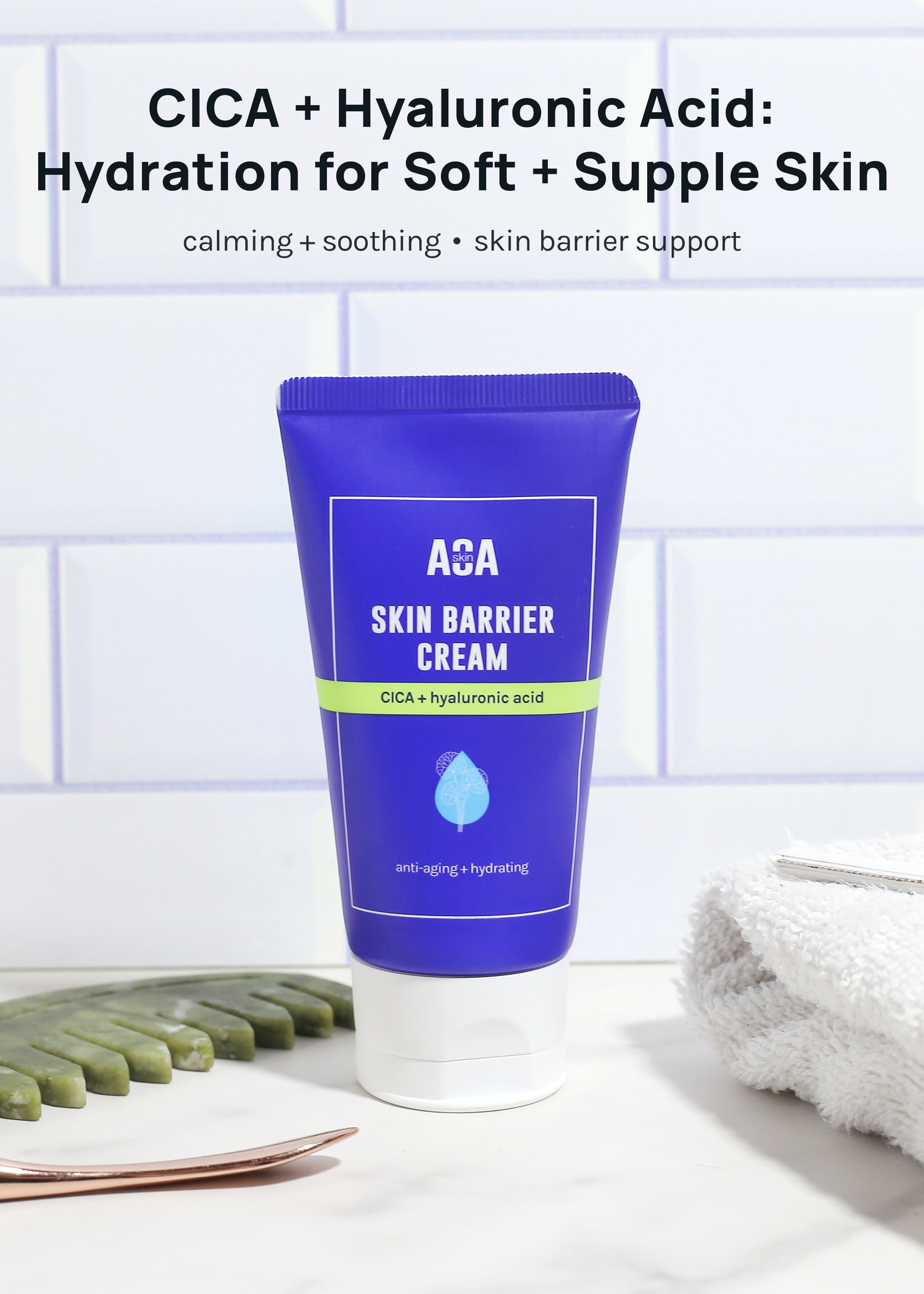 Formulated with soothing Centella Asiatica extract, this moisturizer calms skin inflammation while hyaluronic acid replenishes with intense hydration. It melts into the skin, revitalizing + strengthening the skin barrier while making it soft + supple. Suitable for all skin types.