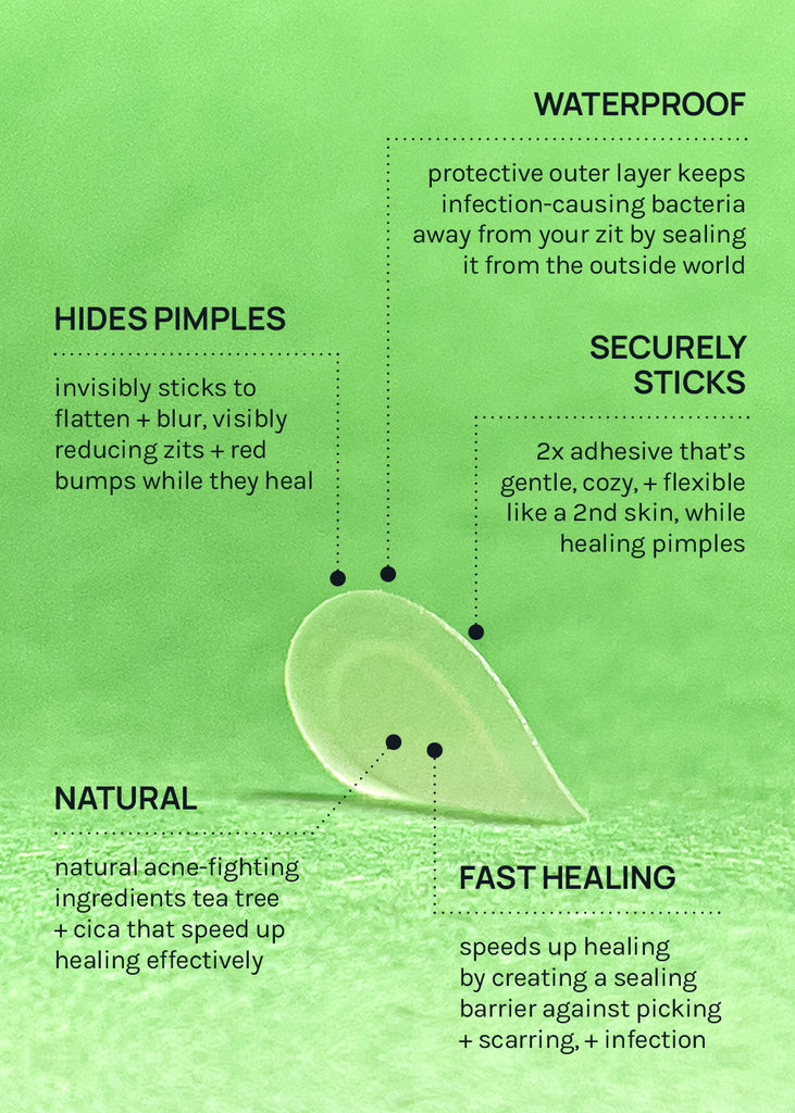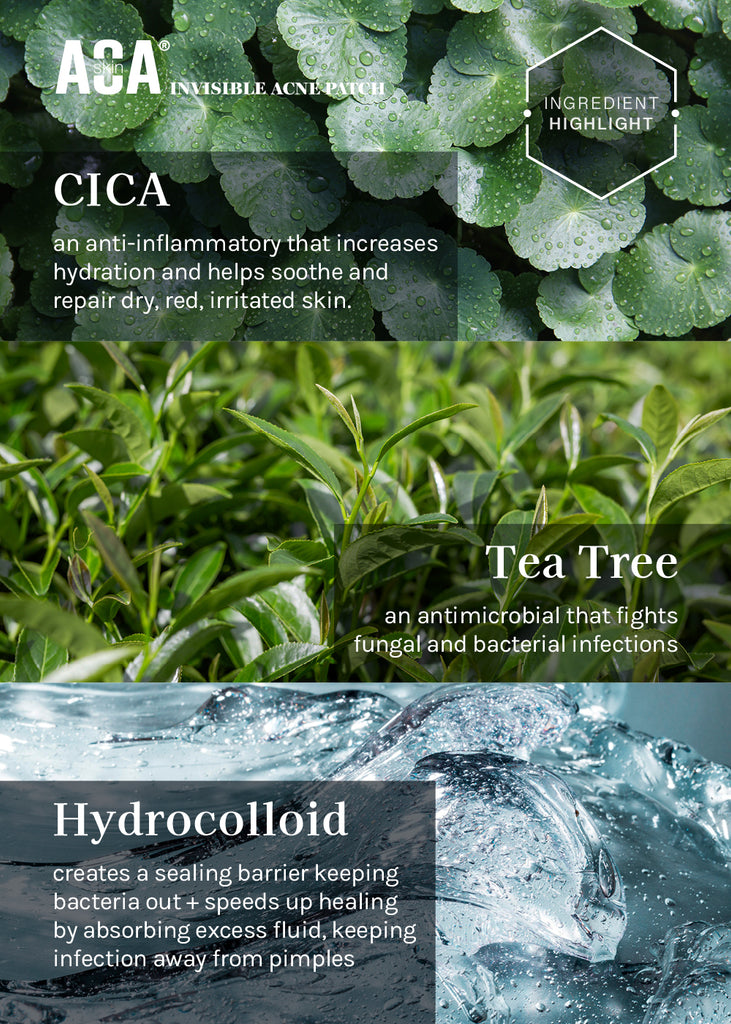 AOA Skin Acne Patches are the most innovative pimple patches on the market! They are super INVISIBLE and STAYS PUT on the skin, so you don't have to worry about them falling off! They protect your blemishes from dirt and germs getting inside while speeding up the healing process!