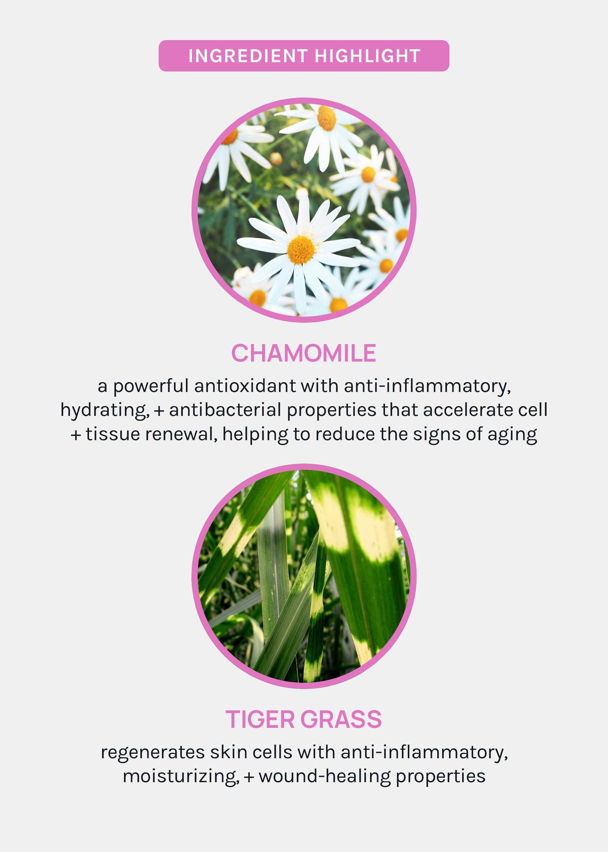 Water, Glycerin, Propylene Glycol, Hydroxyethylcellulose, Allantoin, Diazolidinyl Urea, Disodium Edta, Butylene Glycol, Peg-40 Hydrogenated Castor Oil, Fragrance, lodopropynyl Butylcarbamate, Methylisothiazolinone, Centella Asiatica Extract, Polygonum Cuspidatum Root Extract, Scutellaria Baicalensis Root Extract, Camellia Sinensis Leaf Extract, Glycyrrhiza Glabra (Licorice) Root Extract, Chamomilla Recutita (Matricaria) Flower Extract, Rosmarinus Officinalis (Rosemary) Leaf Extract, 1,2-Hexanediol, Bacillus/Soybean Ferment Extract, Folic Acid, Sodium Hyaluronate, Phenoxyethanol