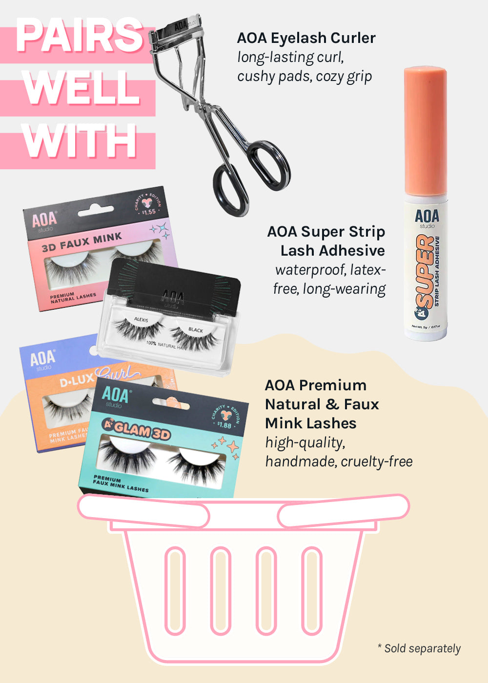 How to use: Gently grab eyelash strip by the lash end + apply glue to the lash band. Align to your eyelash line, then press for 5-7 seconds. Remove the clip + gently secure lash ends.