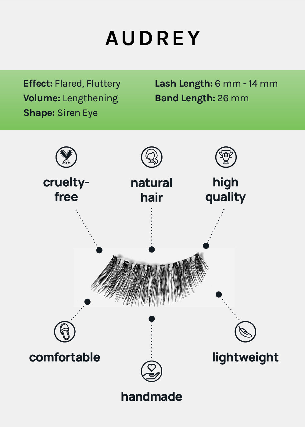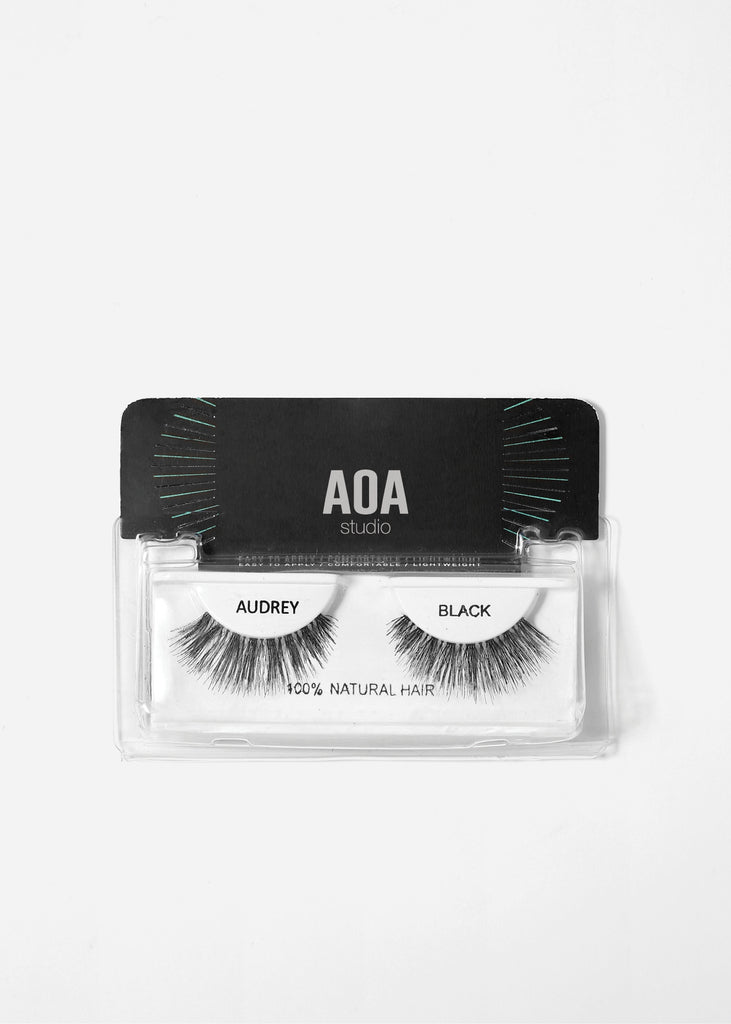 Lightweight + SUPER COMFY, AOA Studio Eyelashes are 100% Natural Hair + add fluttery glamor, length, volume, + definition to all eye shapes. Features a non-scratchy, flexible, invisible lash band for a super realistic look. Handcrafted with care.