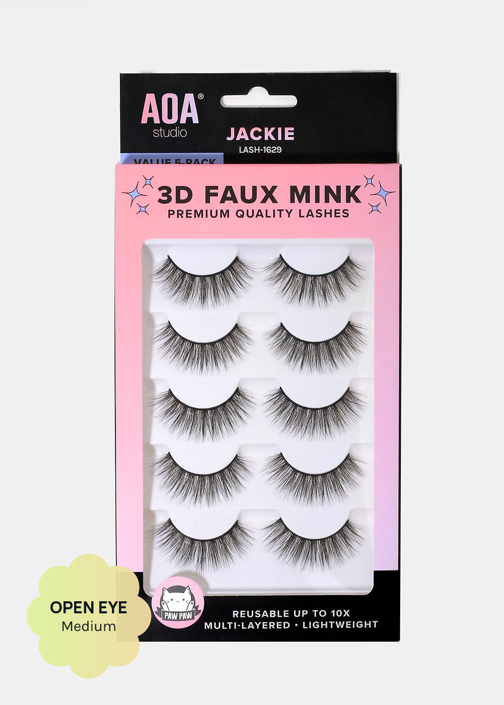 Value set: 5 pairs of the AOA Jackie Paw Paw lash at a discounted price! This is perfect for makeup artists or lash lovers who wear them daily. Easy and convenient packaging. Stock up now!