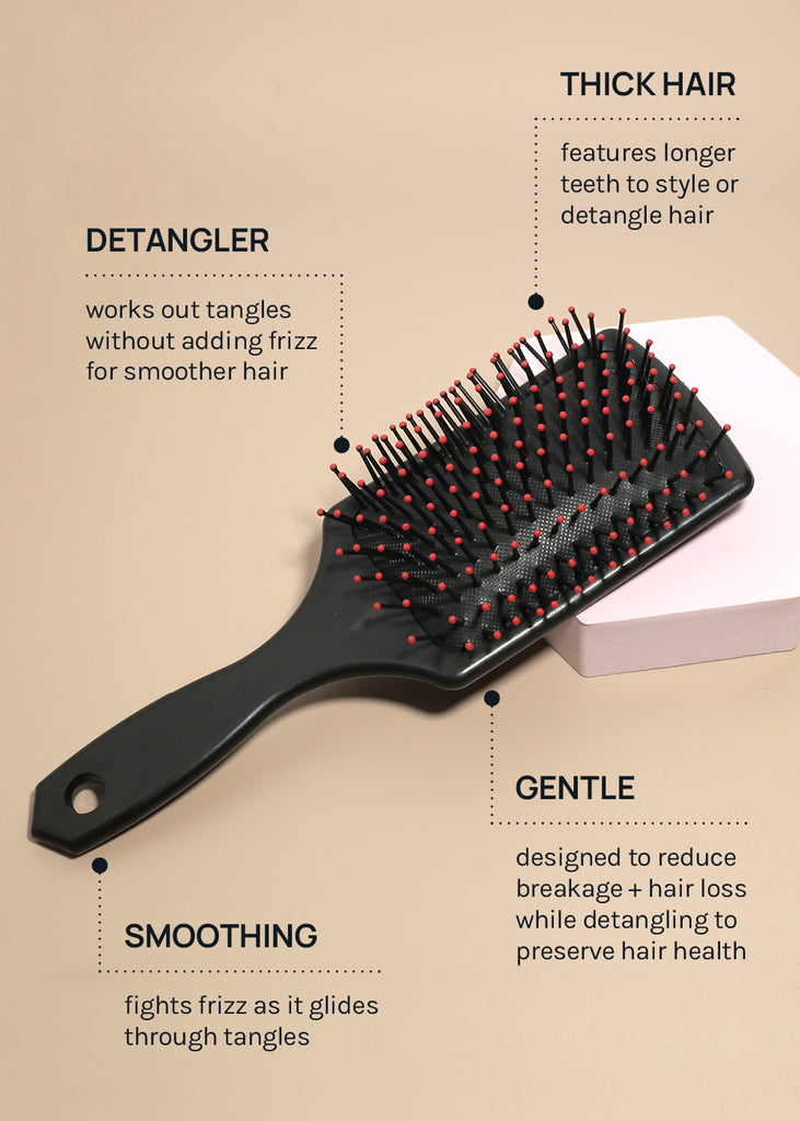 Gentle detangler for thick hair: longer teeth minimize breakage, fight frizz, + tame tangles for smoother, healthier hair styling + care.