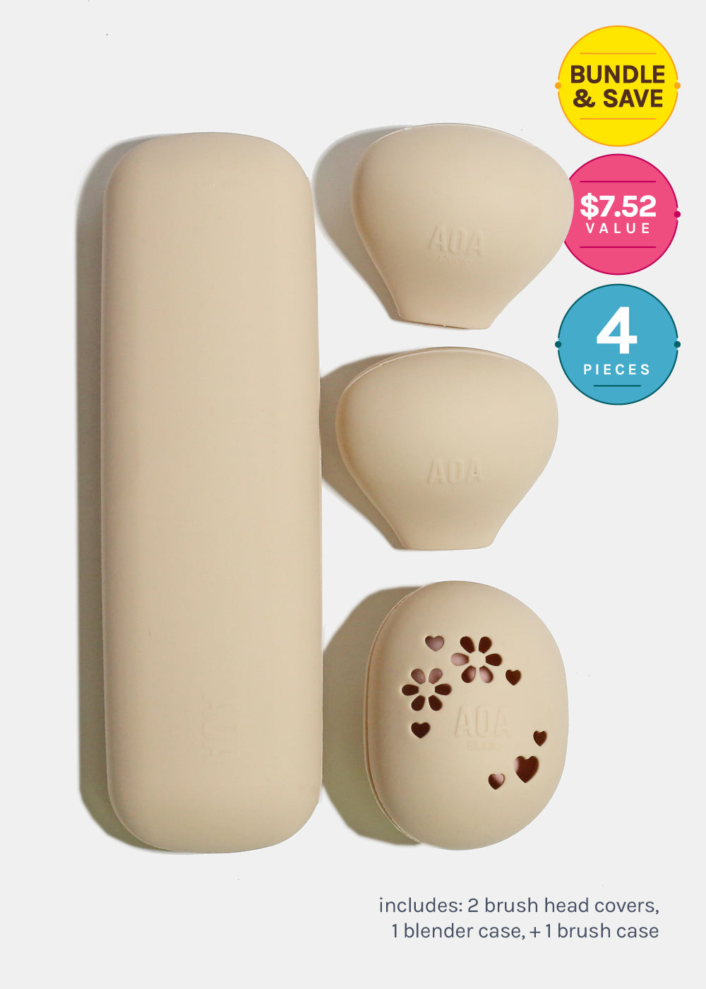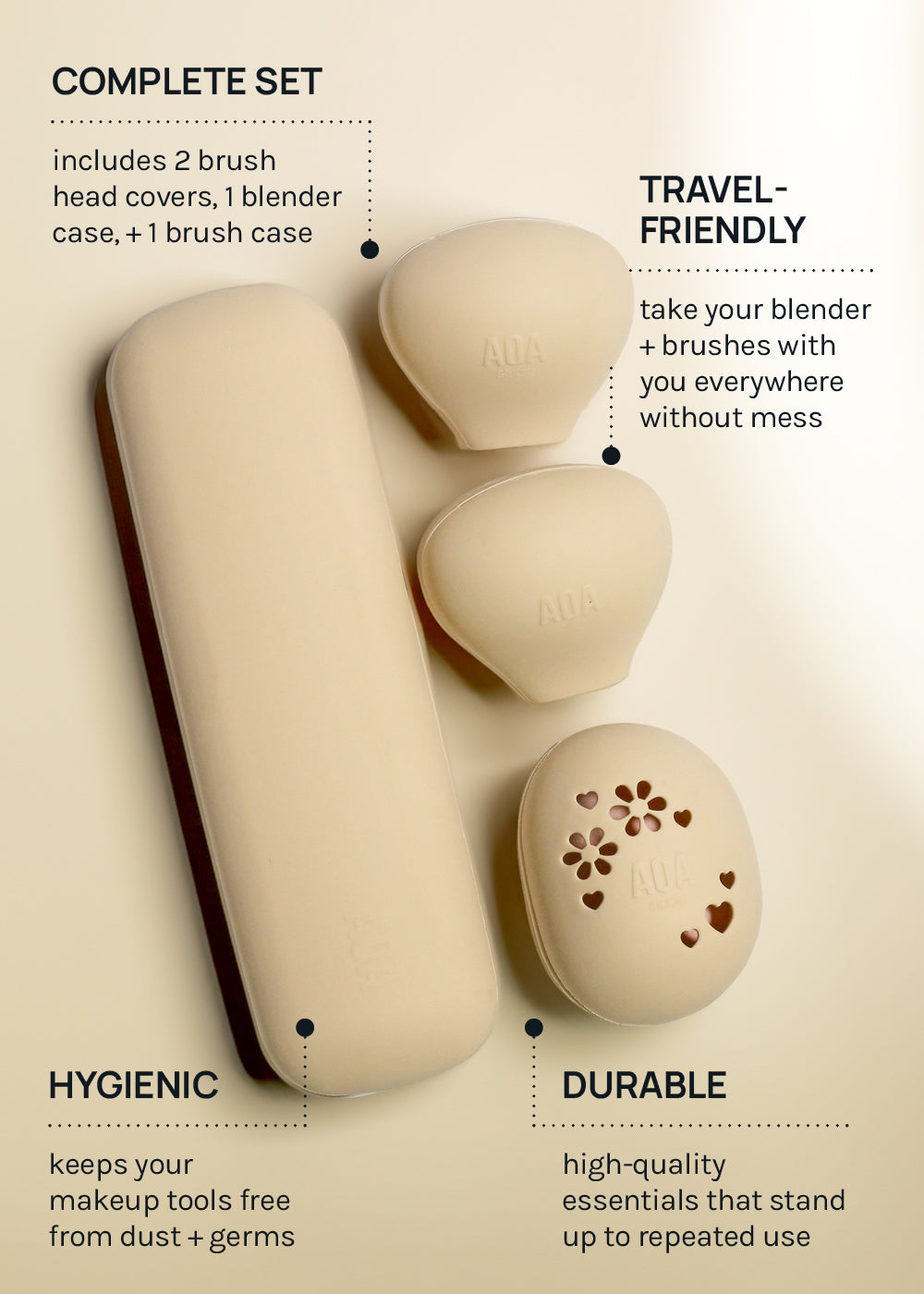 Includes: 2 brush head covers, 1 blender case, and 1 brush case.