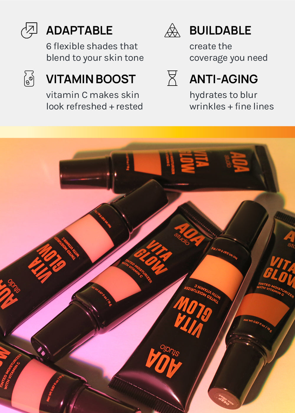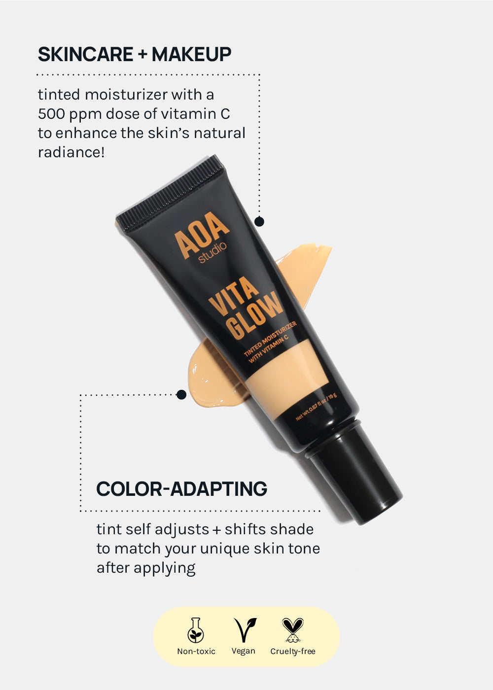 - A lightweight, natural coverage tinted moisturizer that is infused with Vitamin C to help brighten dull skin!