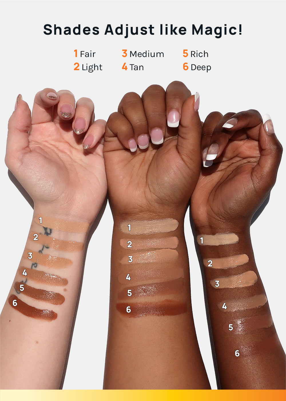 - Skin tone adapting 6 shades