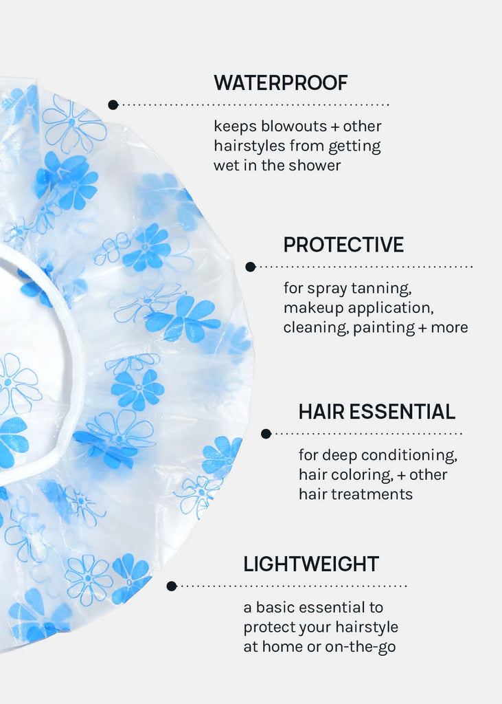 Keep your hair protected + stylish with AOA's Waterproof + Lightweight Shower Caps! Designed to shield your hair from water + moisture, these shower caps are perfect for use in the shower, sauna, spa, or during your skincare routine. Made with durable material, they provide a snug, comfortable fit while being safe for all hair types.