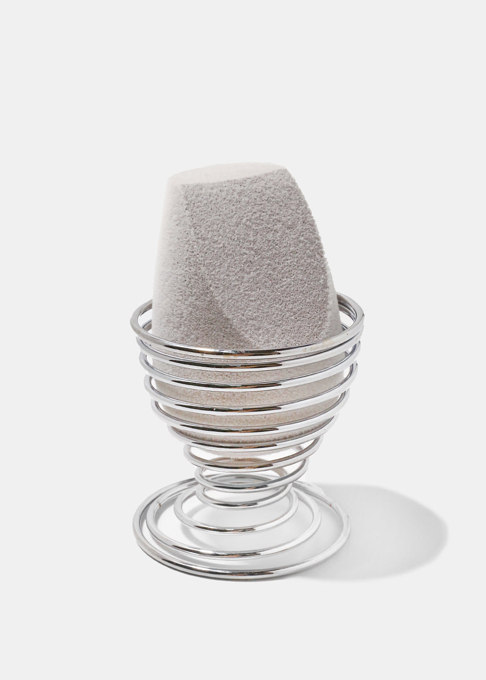 A perfect accent to add to your makeup table. This keeps the sponge from touching dirty surfaces and keeps it in an upright position while drying!